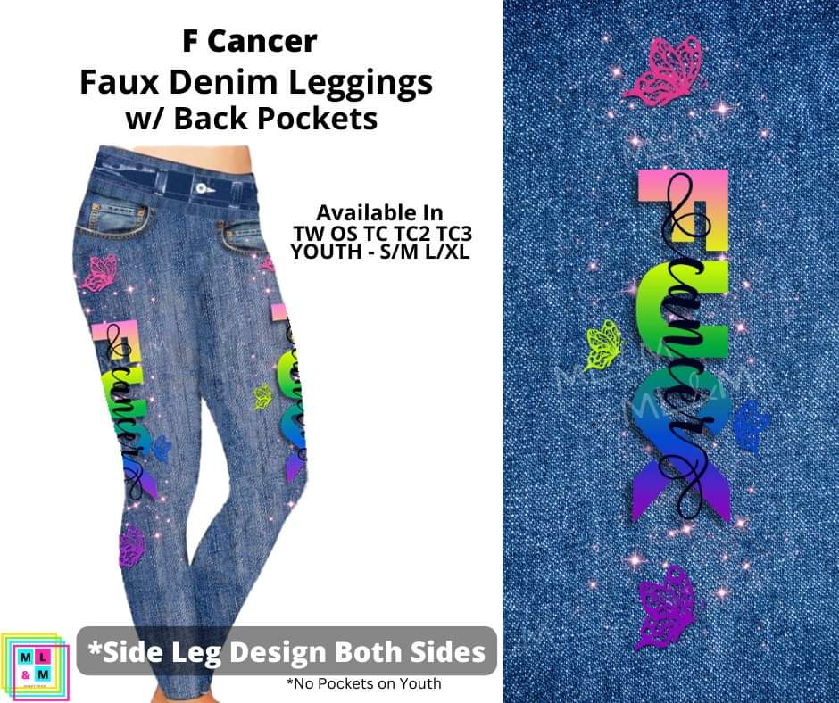 F Cancer Full Length Faux Denim w/ Side Leg Designs