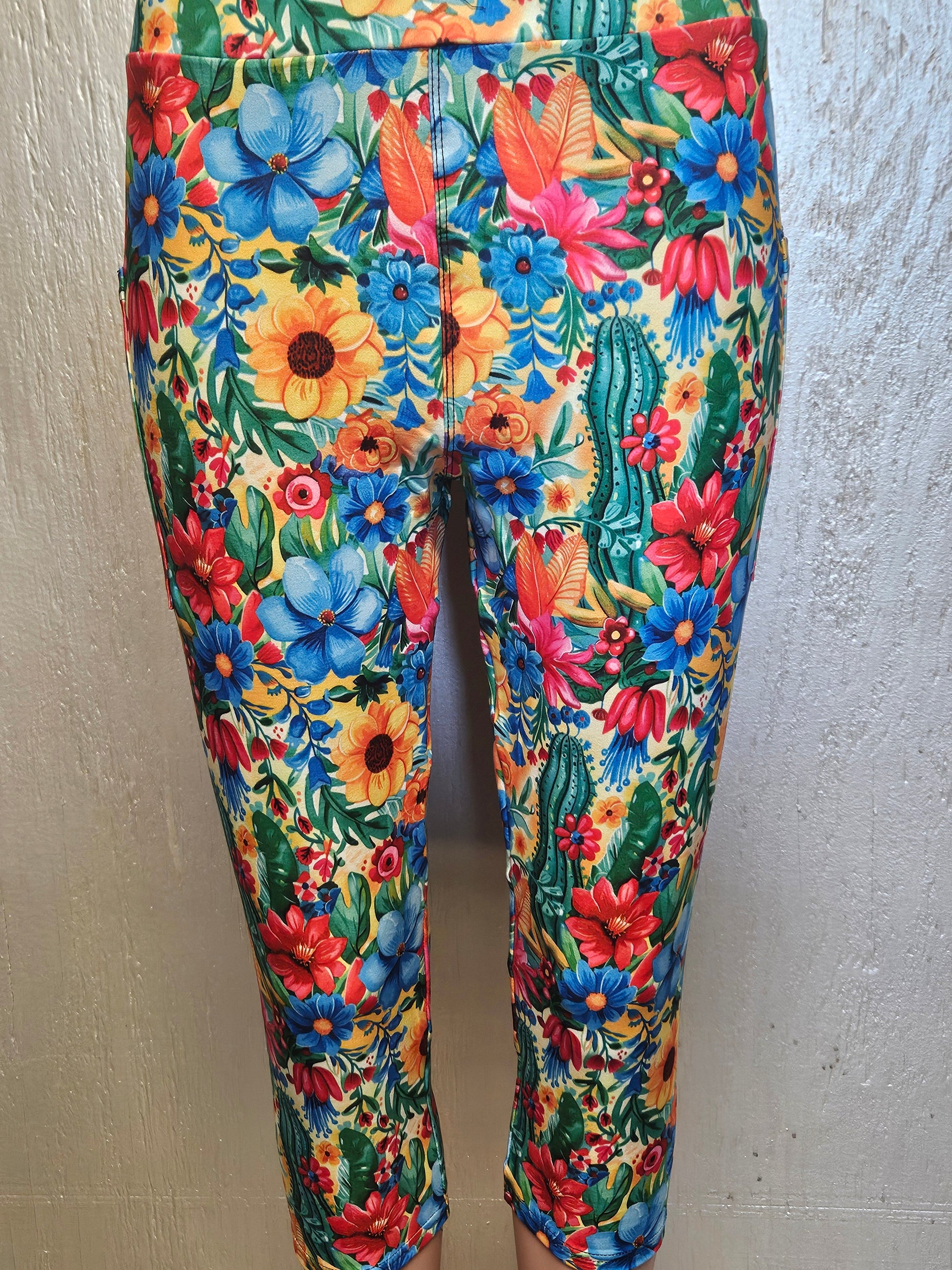 Fiesta Floral Cactus capris and bike shorts with pockets