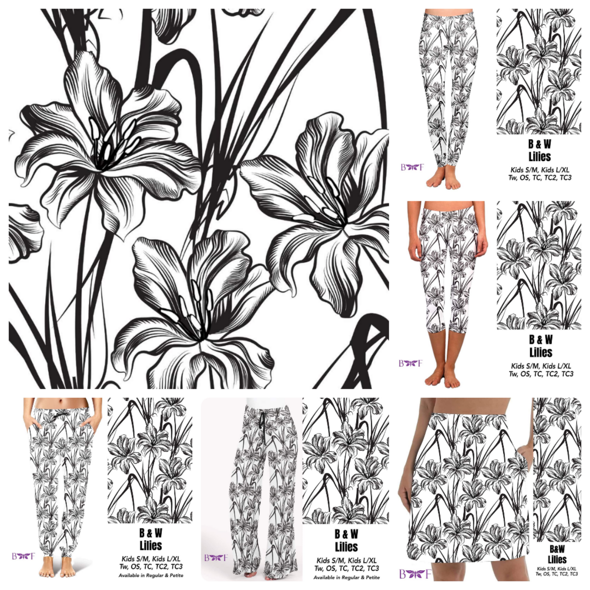 B&W Lillies leggings and capris with pockets