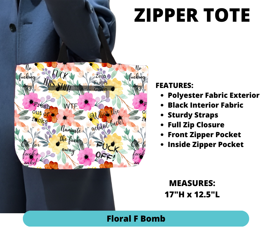 Floral F Bomb Zipper Tote