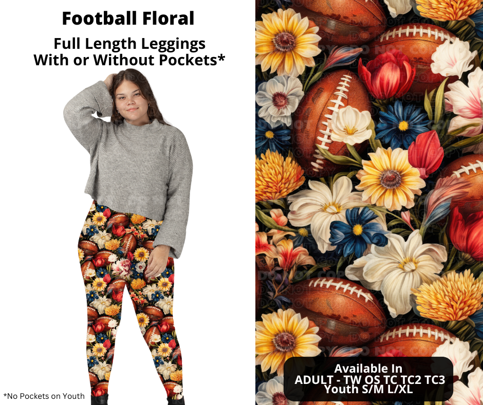 Football Floral Full Length Leggings w/ Pockets