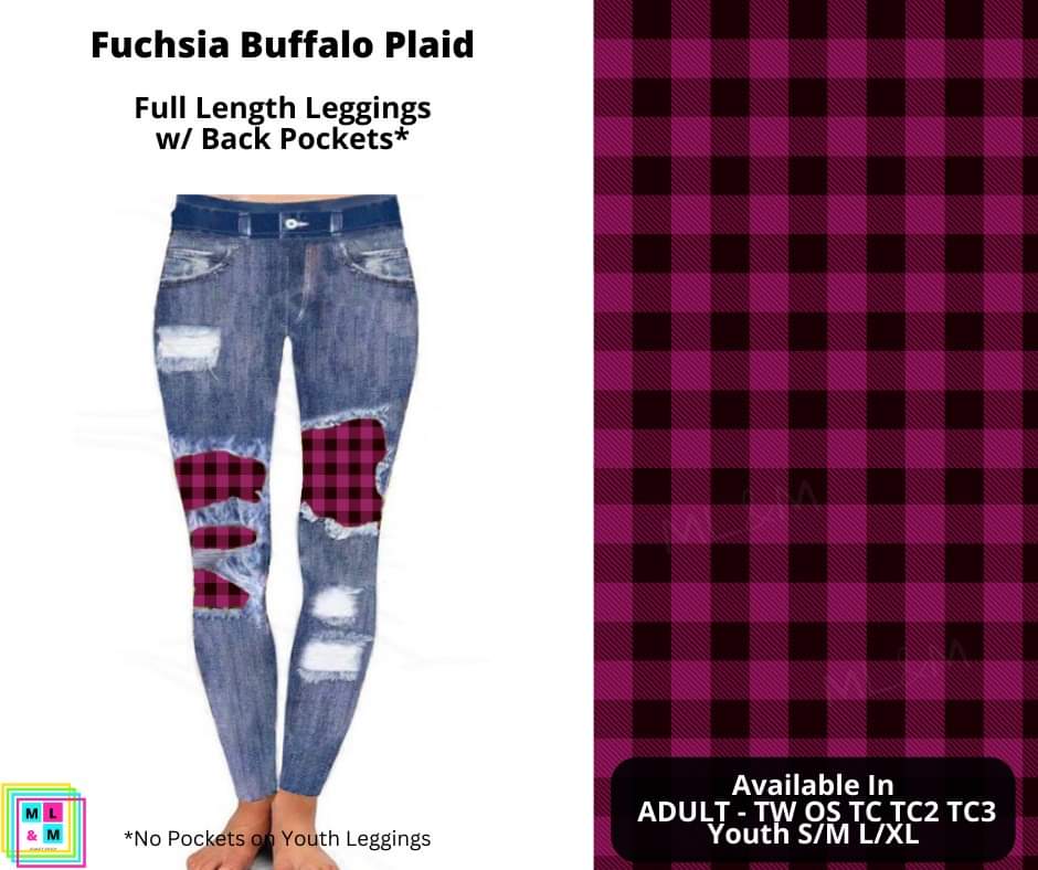 Fuchsia Buffalo Plaid Faux Denim Full Length Peekaboo Leggings