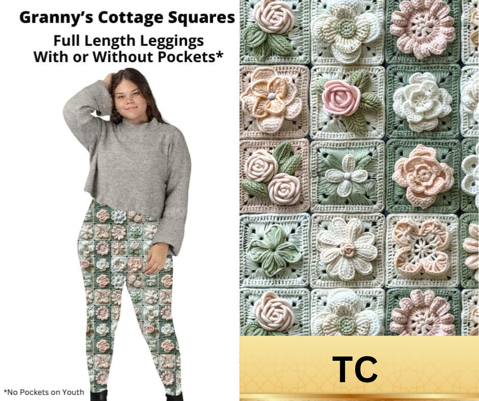 Granny's Cottage Squares Full Length Leggings w/ Pockets