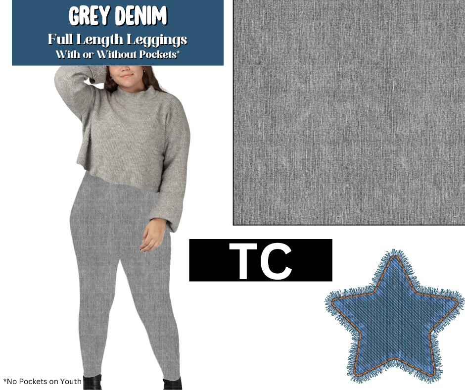 Grey Denim Full Length Leggings w/ Pockets