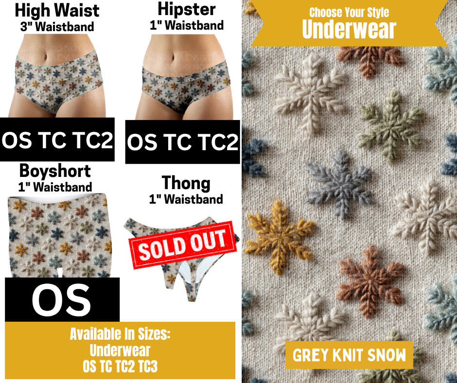 Grey Knit Snow Hipster, High Waist, Boyshort Underwear
