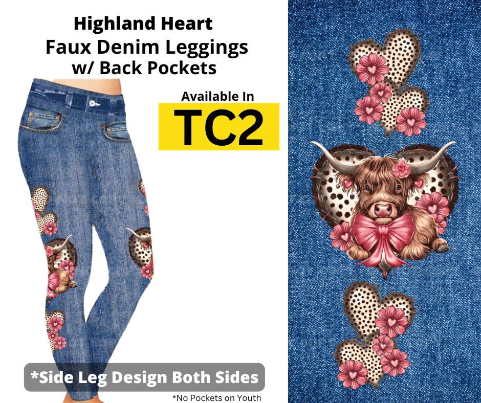 Highland Heart Full Length Faux Denim w/ Side Leg Designs