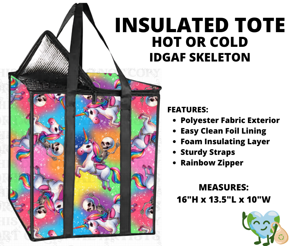 Our insulted totes keep things either hot or cold - they don't discriminate. They're the perfect sidekick for grocery runs, food deliveries, camping, fishing/hunting escapades, sports games, events, road-trips, and beyond. Features include a polyester fabric exterior, easy-to-clean foil lining, sturdy straps, and a rainbow zipper.