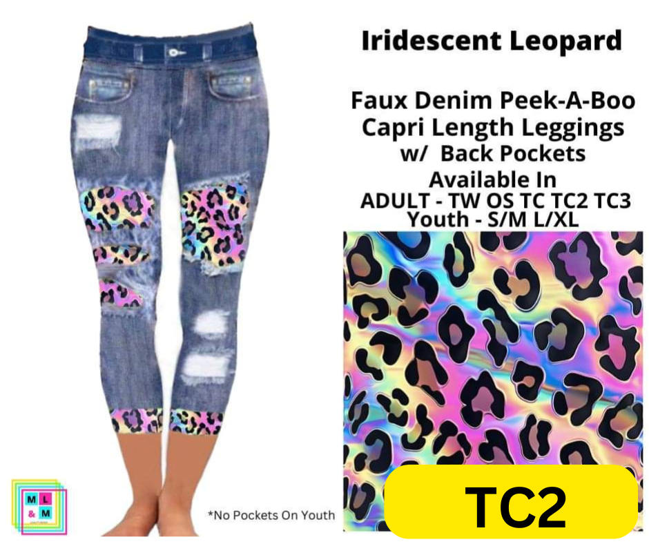 Iridescent Leopard Faux Denim Peekaboo Capris