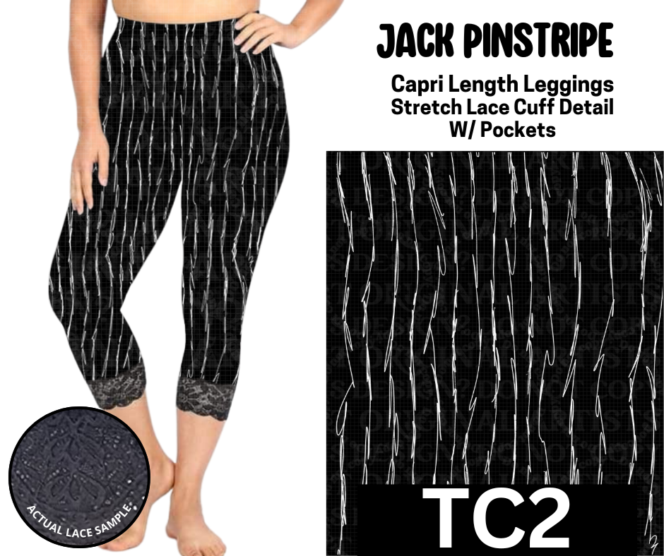 Jack Pinstripe Lace Cuff Capris w/ Pockets