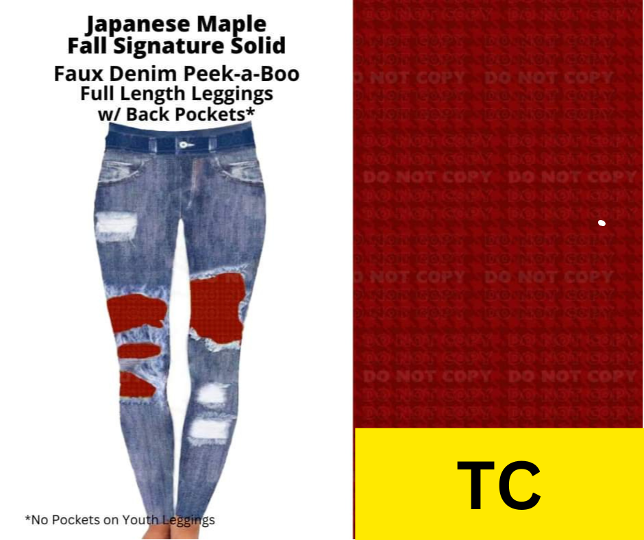 Japanese Maple Faux Denim Full Length Peekaboo Leggings
