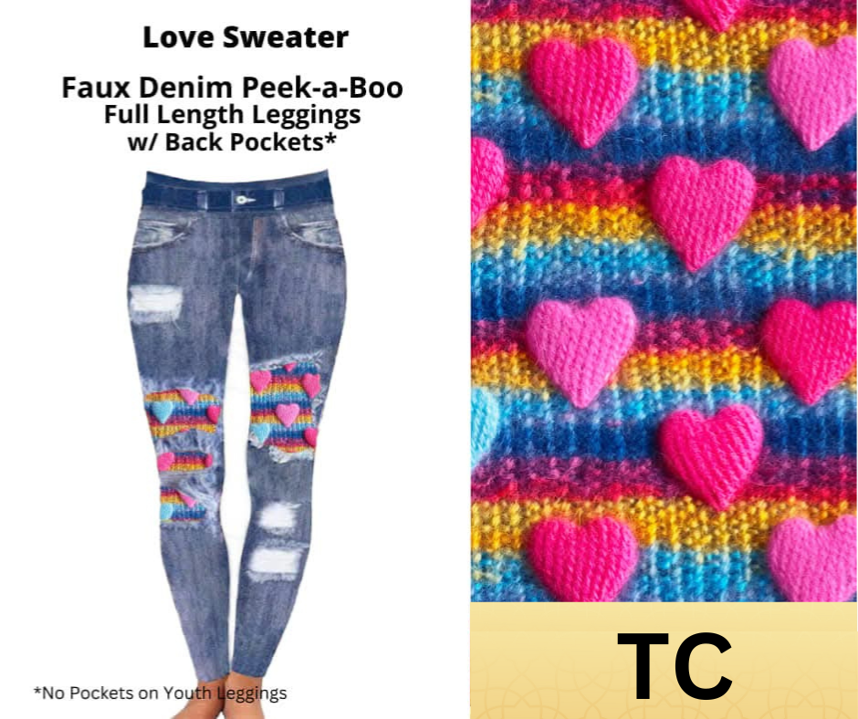 Love Sweater Faux Denim Full Length Peekaboo Leggings