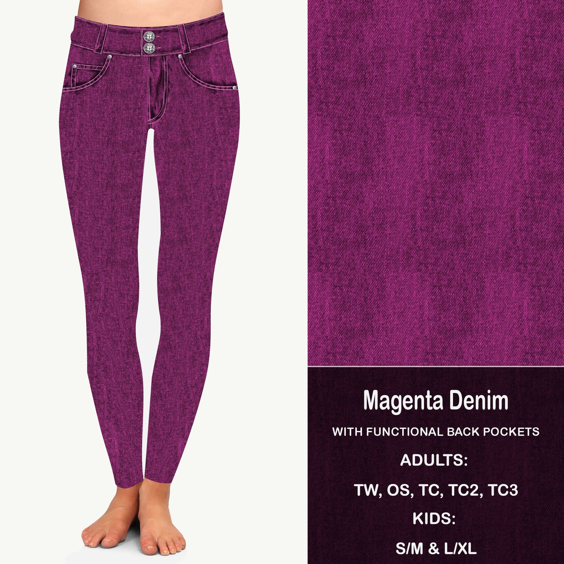 MAGENTA FAUX DENIM - Leggings with Pockets Preorder Closes 8/21 ETA LATE SEPT EARLY OCT