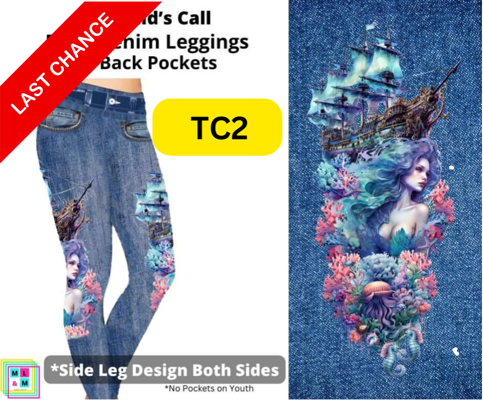 Mermaid's Call Full Length Faux Denim w/ Side Leg Designs