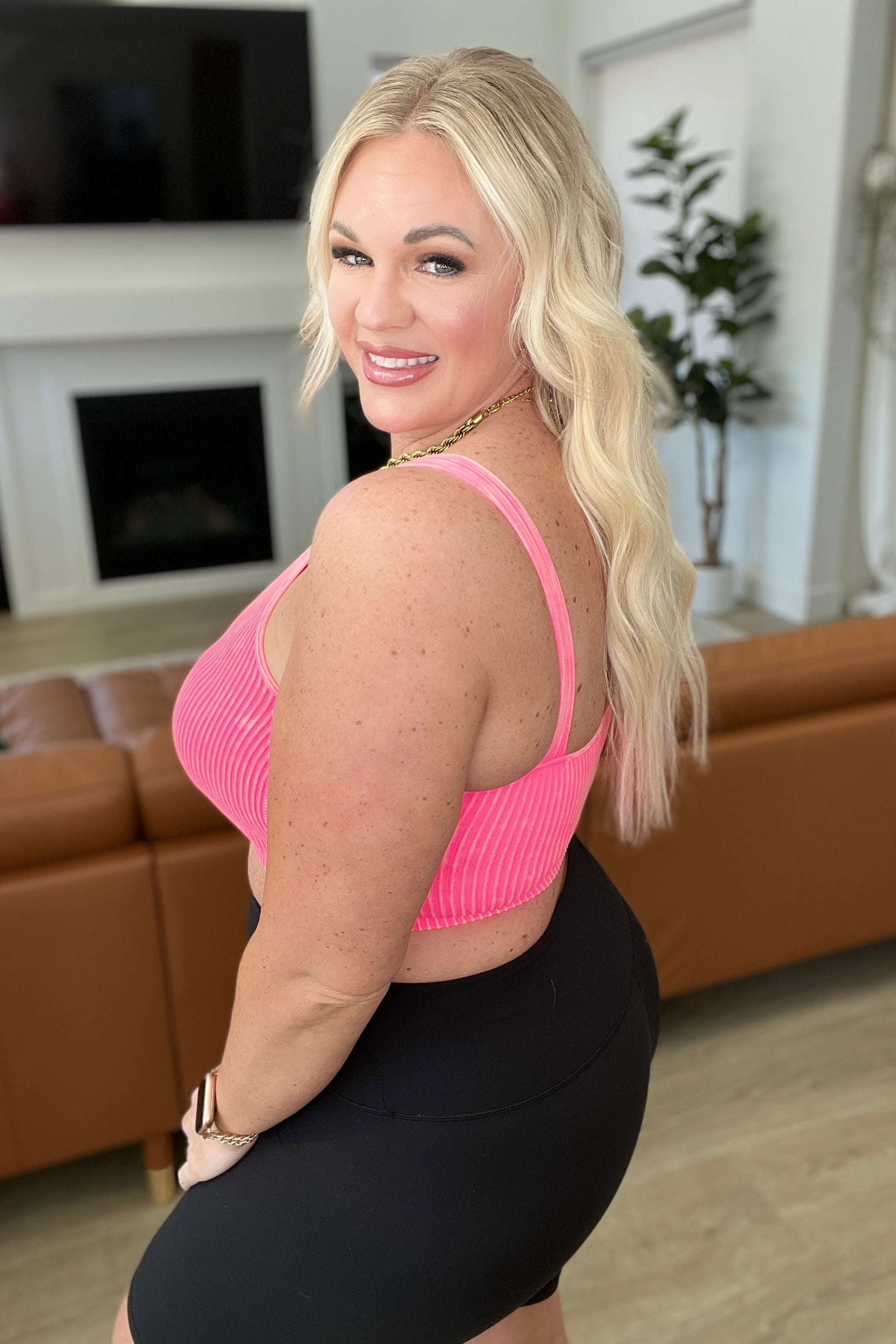 Mineral Washed Padded Cropped Tank in Fuchsia