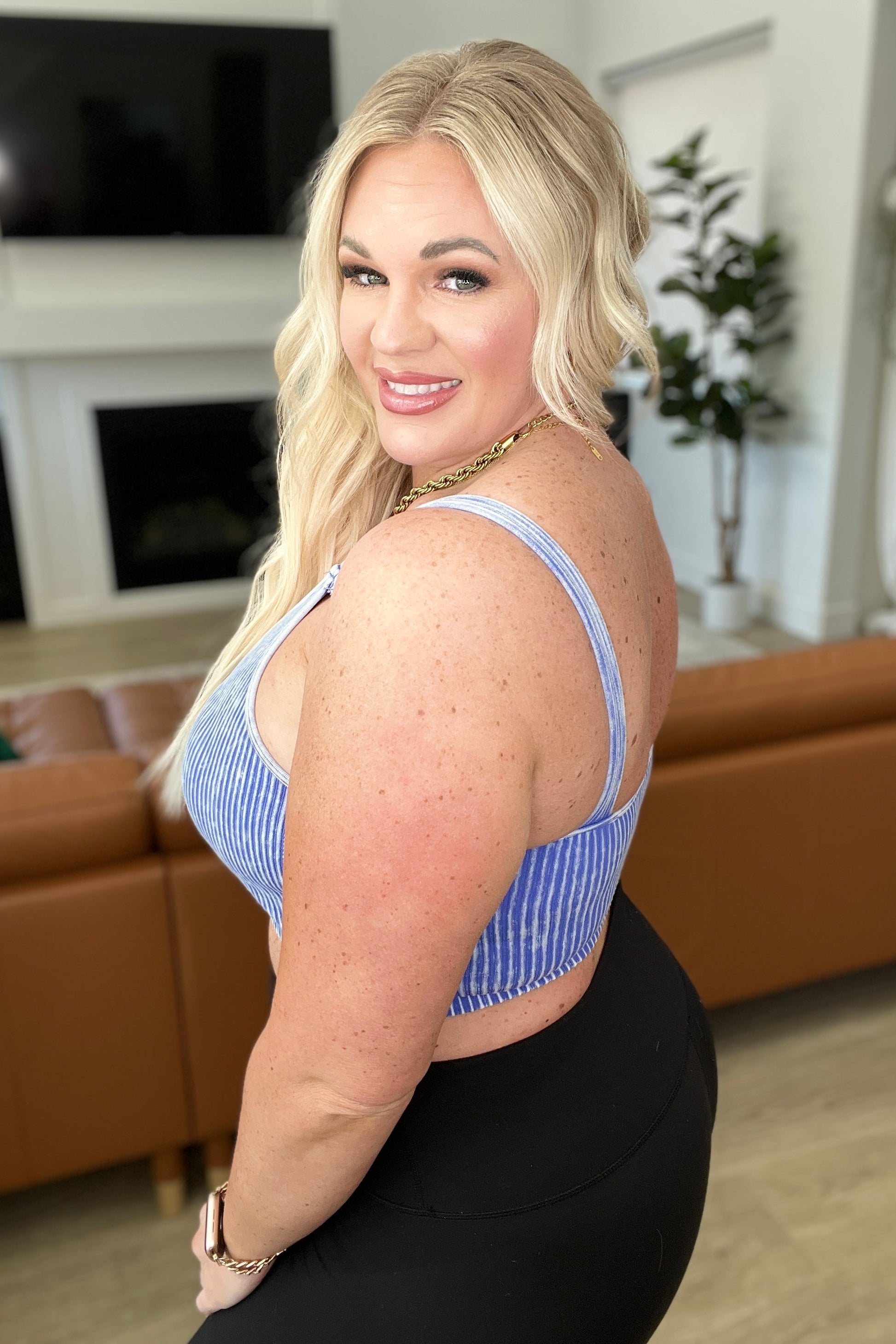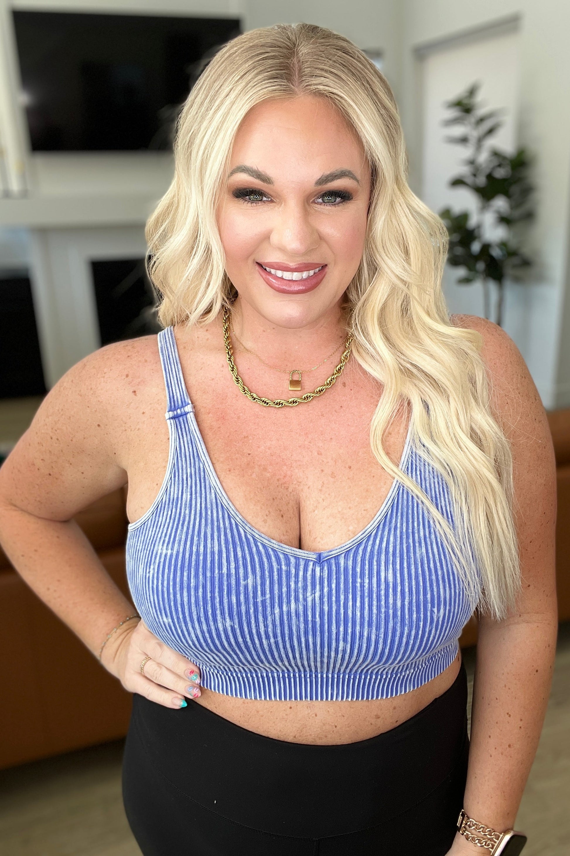Mineral Washed Padded Cropped Tank in Light Indigo