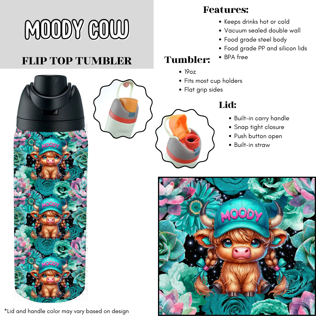 Moody Cow Flip Top Tumbler