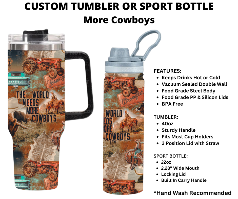 The Custom Tumbler, at 40oz, comes complete with a sturdy handle, 3-way lid, and a convenient straw. Choose the sleek 22oz Sport Bottle with its unique locking wide mouth lid and built-in handle for on-the-go hydration. Order now for your perfect, personalized drinkware!