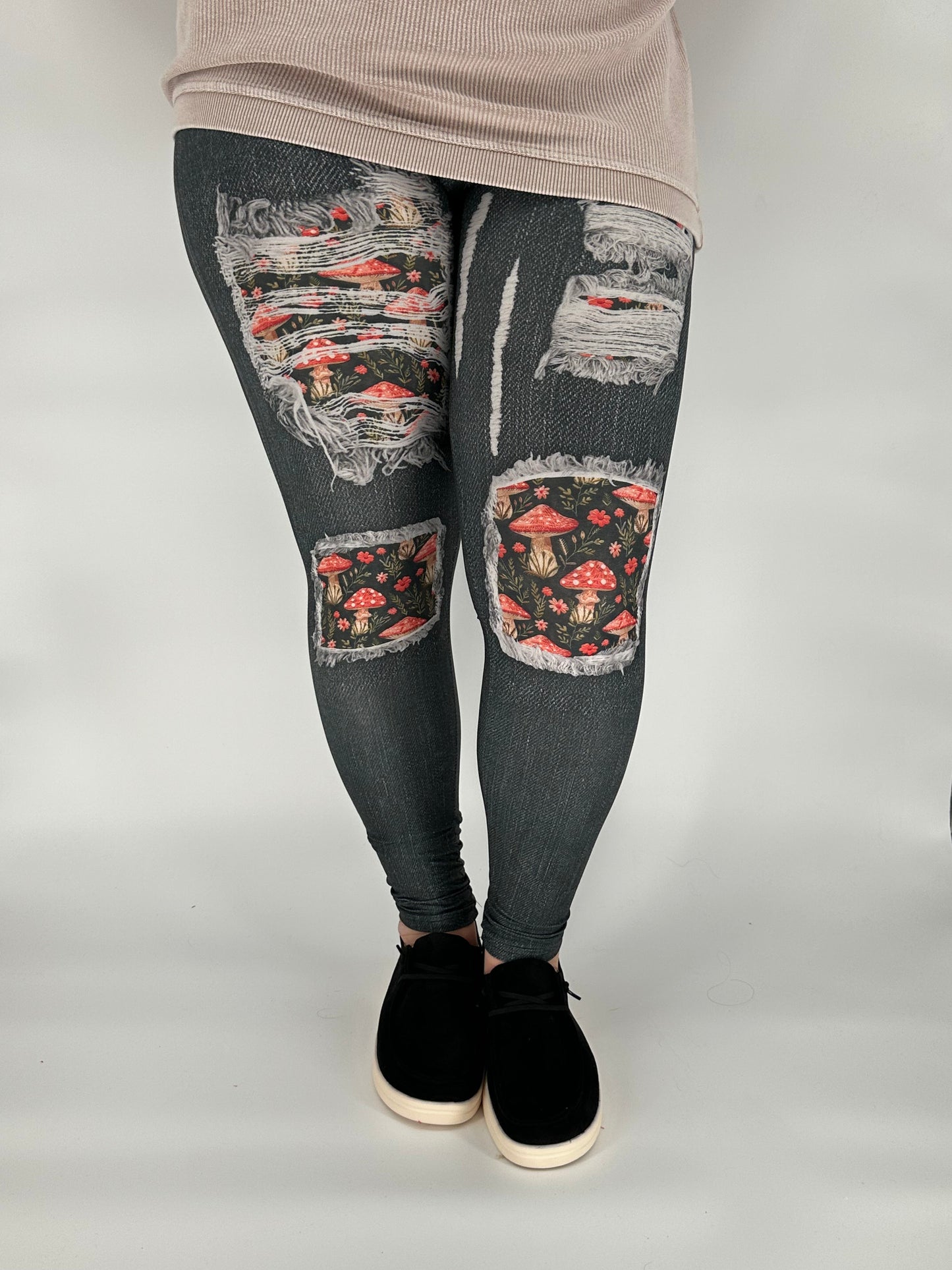 Mushroom Denim Leggings w/ Back Pockets