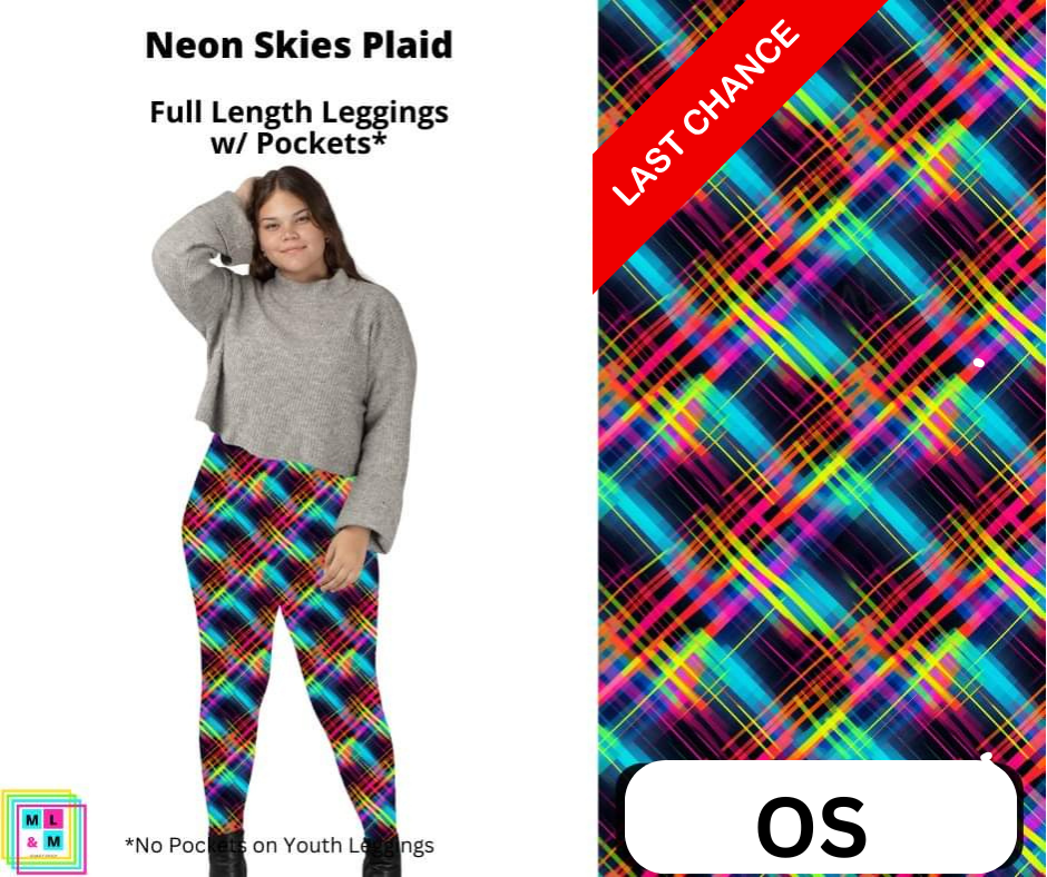 Neon Skies Plaid Full Length Leggings w/ Pockets