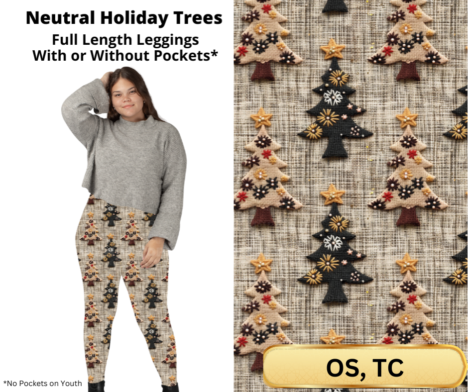 Neutral Holiday Trees Full Length Leggings w/ Pockets