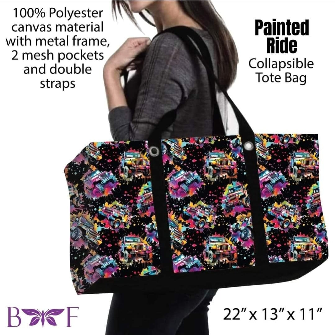 Painted ride large tote and 2 inside mesh pockets