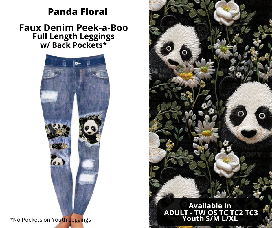 Panda Floral Faux Denim Full Length Peekaboo Leggings