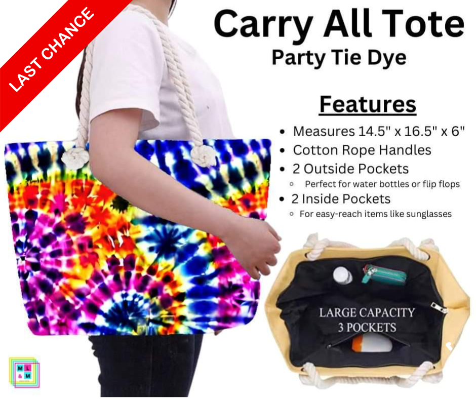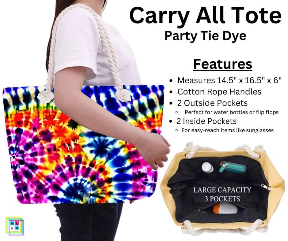 Party Tie Dye Carry All Tote w/ Zipper