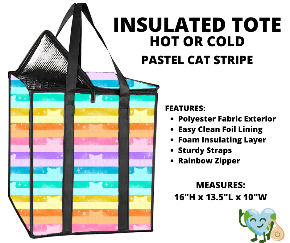 Pastel Cat Stripe Insulated Tote