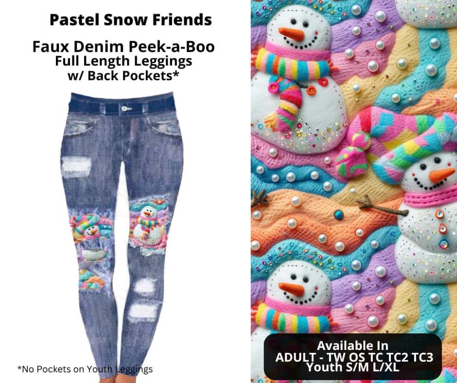 Pastel Snow Friends Faux Denim Full Length Peekaboo Leggings