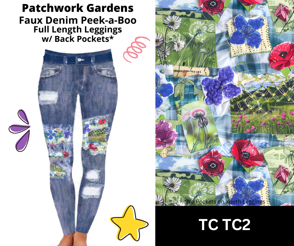 Patchwork Gardens Faux Denim Full Length Peekaboo Leggings