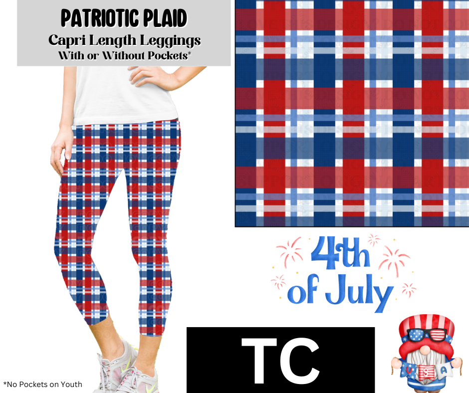 Patriotic Plaid Capri Length Leggings w/ Pockets