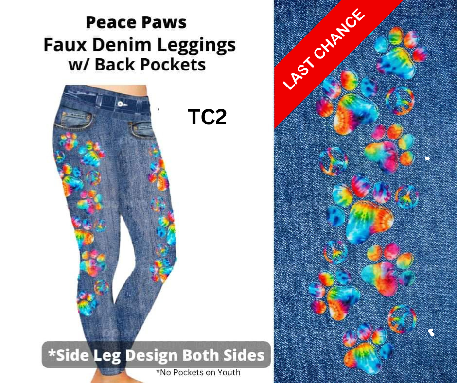 Peace Paws Full Length Faux Denim w/ Side Leg Designs