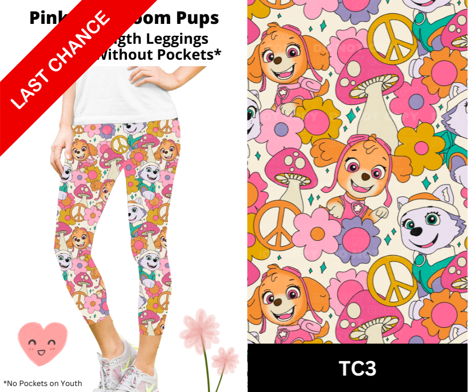 Pink Mushroom Pups Capri Length Leggings w/ Pockets