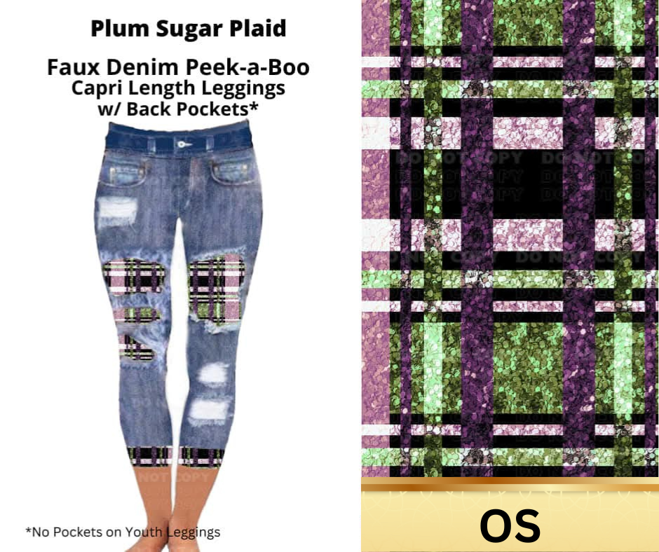Plum Sugar Plaid Capri Faux Denim Peekaboo