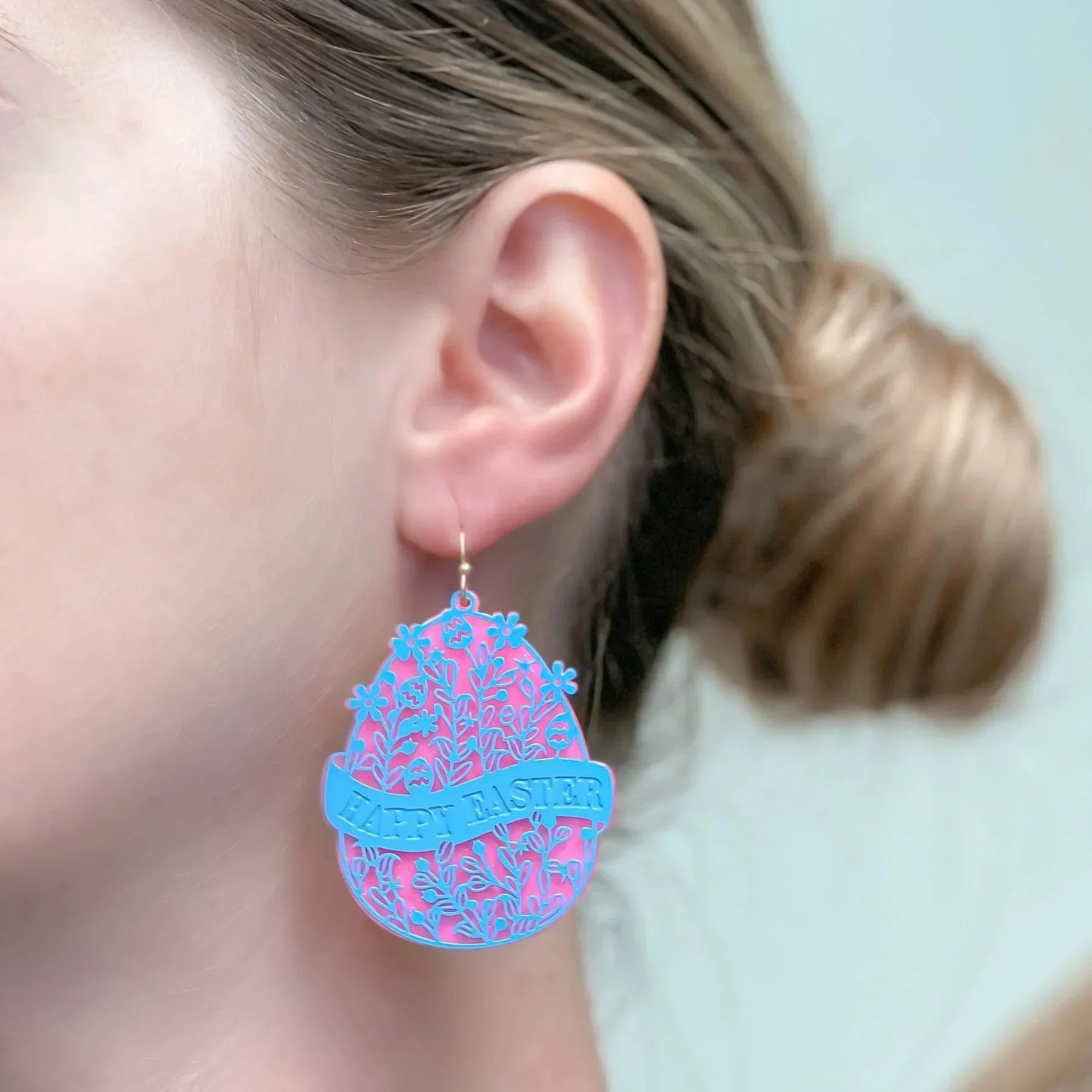 PREORDER: Blooming Floral Happy Easter Egg Dangle Earrings in Two Colors