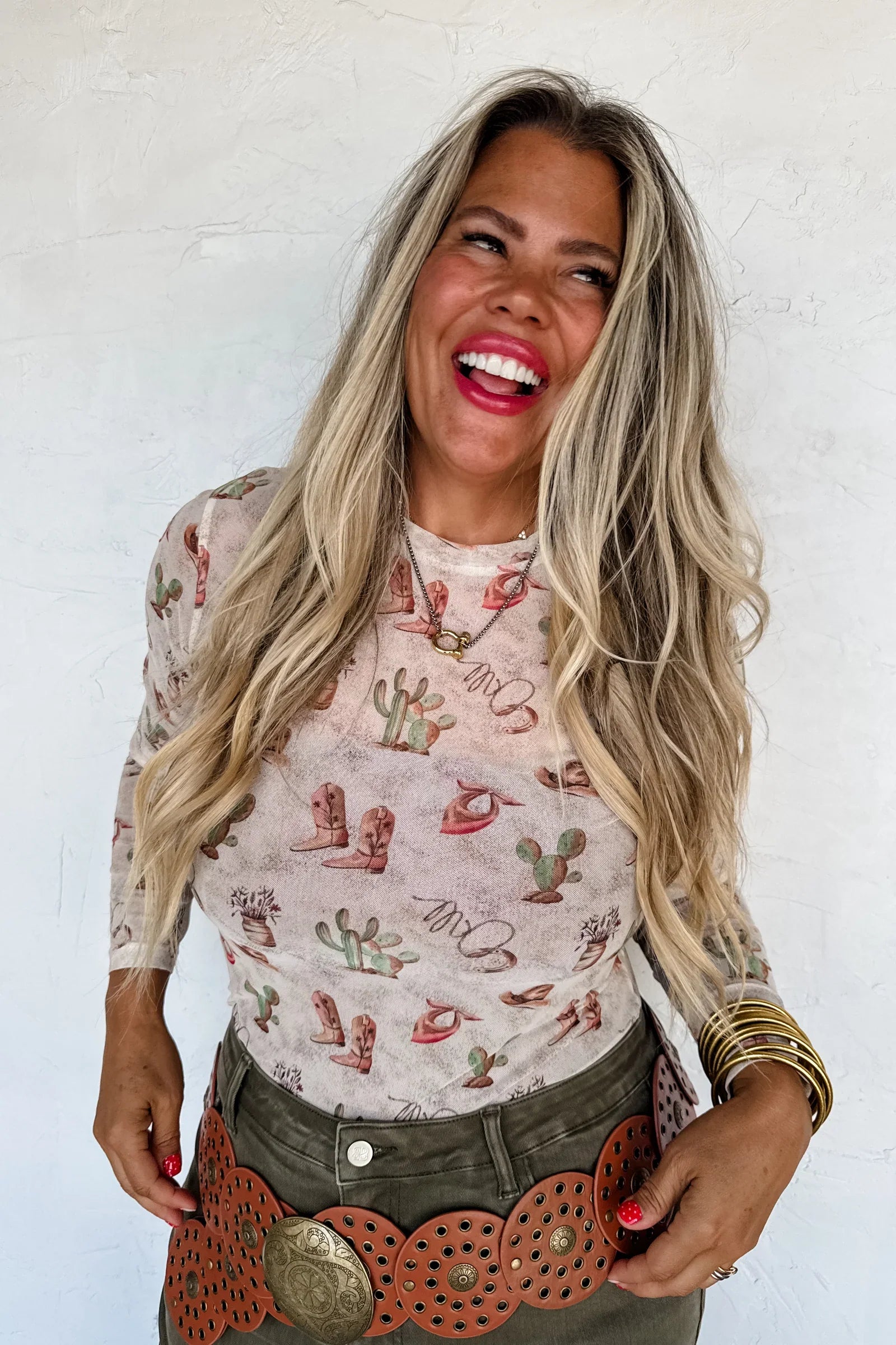 Our new Mesh Tops are HERE!! Super cute for layering! Stretchy mesh print long-sleeve top features a totally sheer design. Perfect worn alone or paired under your favorite Lola cardigan, vest or sweater! Crew neck and thumbhole detail sleeves.