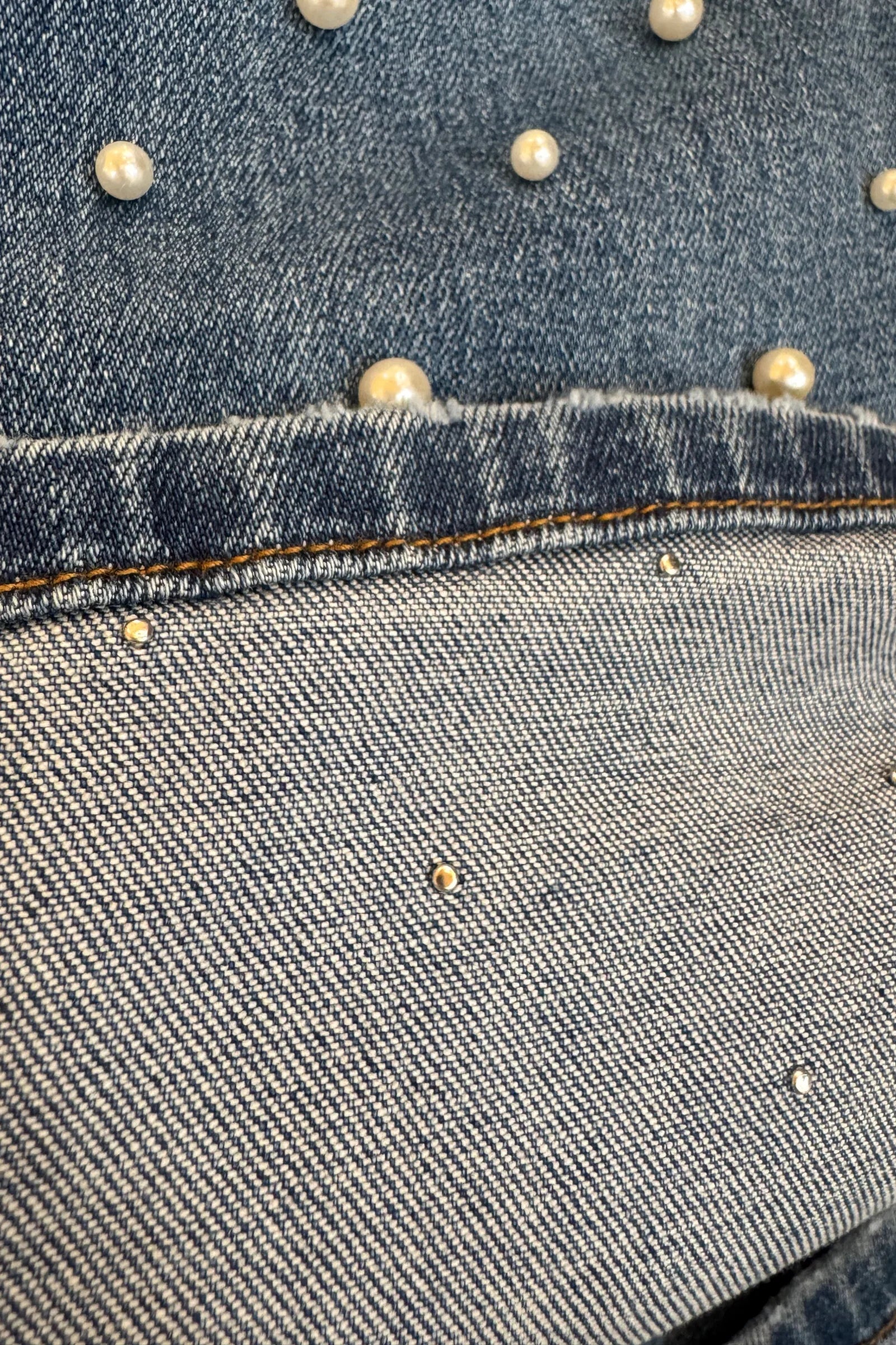 PREPARE TO FALL IN LOVE! These studded pearl jeans are what dreams are made of! Features great stretch, a straight leg and a 29" slight cropped style. These are a MUST have to add to your jean Collections.