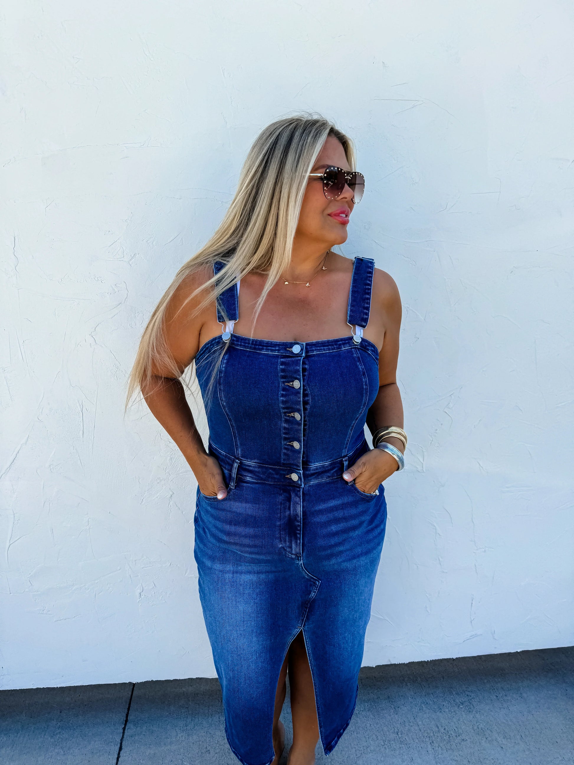 The cutest overalls we have made to date! Trust us when we say you’re not going to want to sleep on these! Such a form flattering stretchy denim that hugs curves in all the right places.