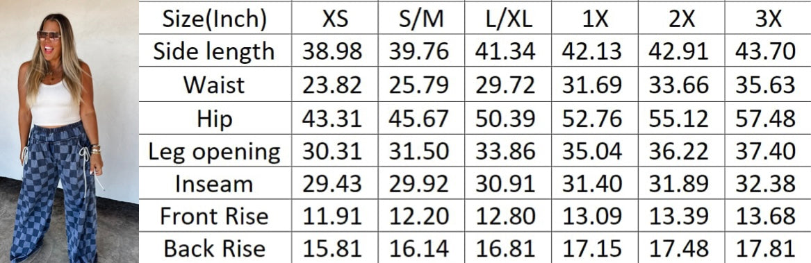 These statement-making STRETCHY wide leg pants feature a bold checker print, cute oversized drawstring pockets and an elastic stretchy waist! These pants are sure to be your new favs!
