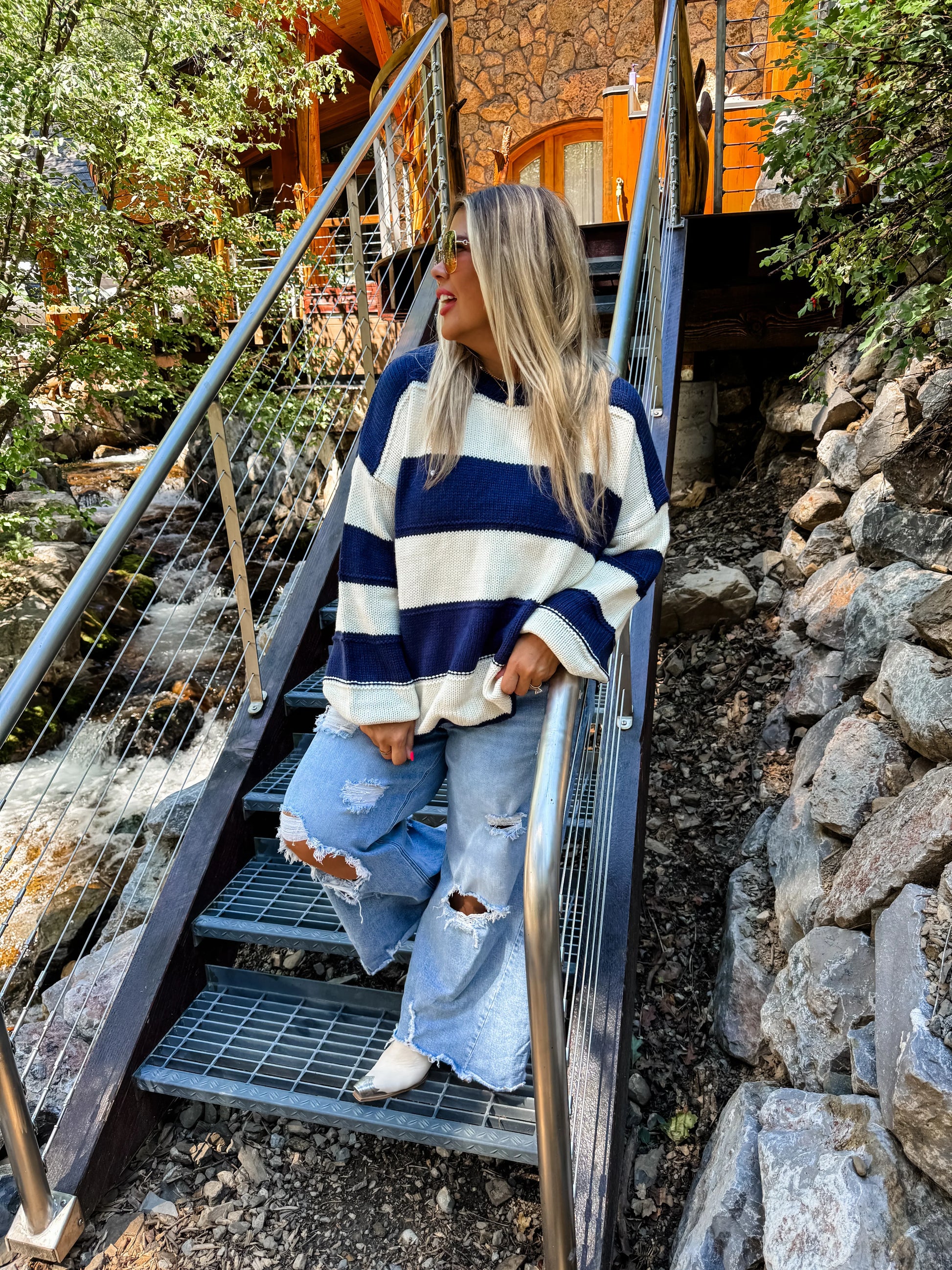 These chunky knit striped sweaters are the perfect cold weather sweater! Cozy and soft - not itchy! Has an oversized fit and is ultimate comfort!