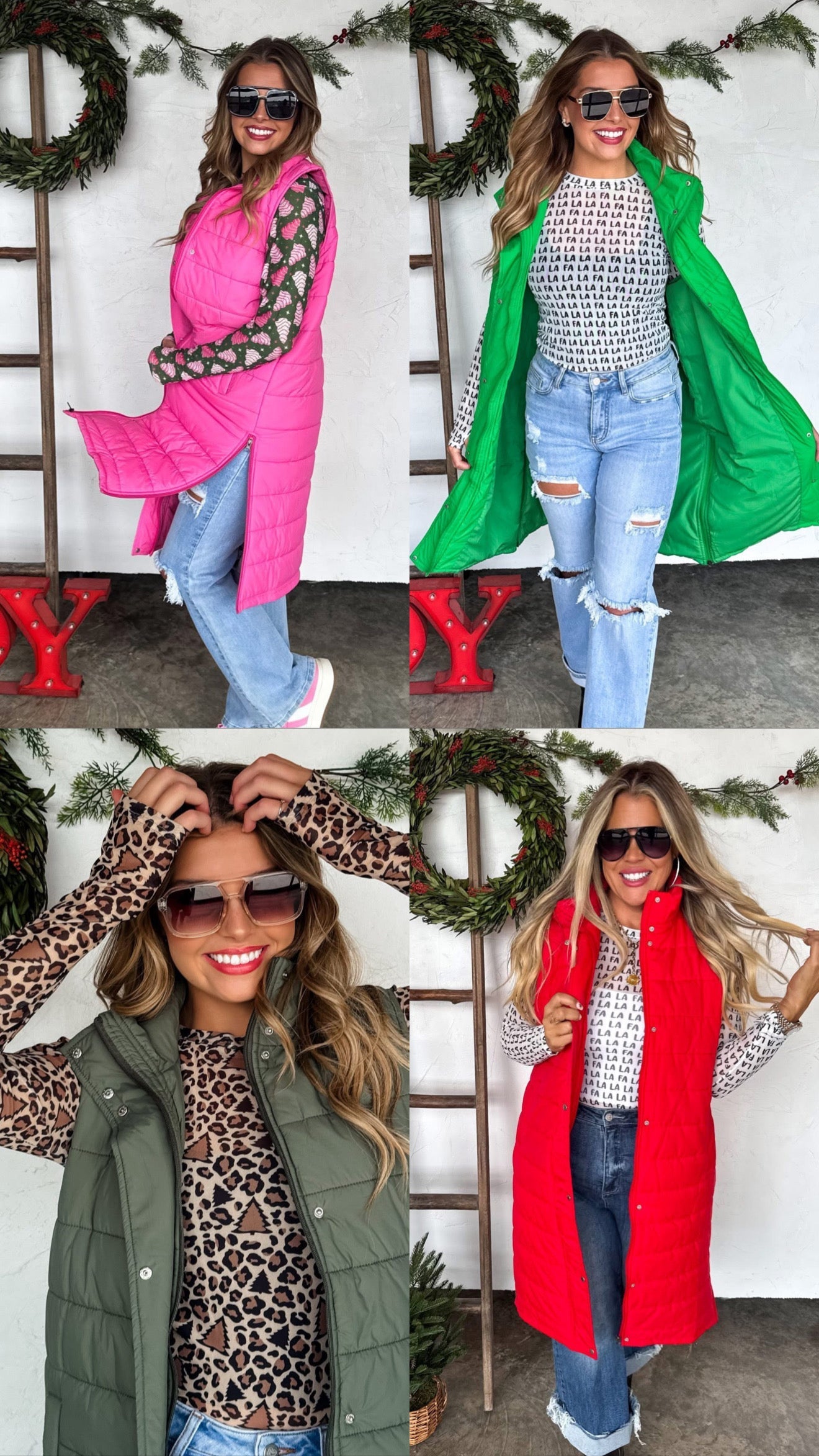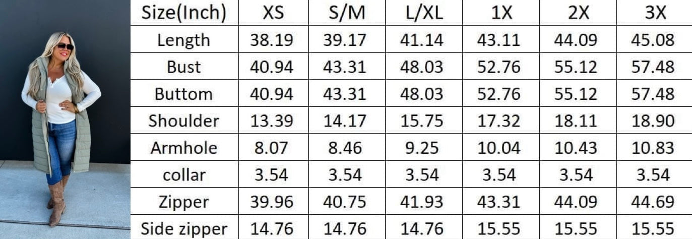 Stay warm and stylish this winter with the CUTEST LONG PUFFER VEST. Features snap buttons, ZIPPER and side pockets. Even the sides have a working zipper detail!