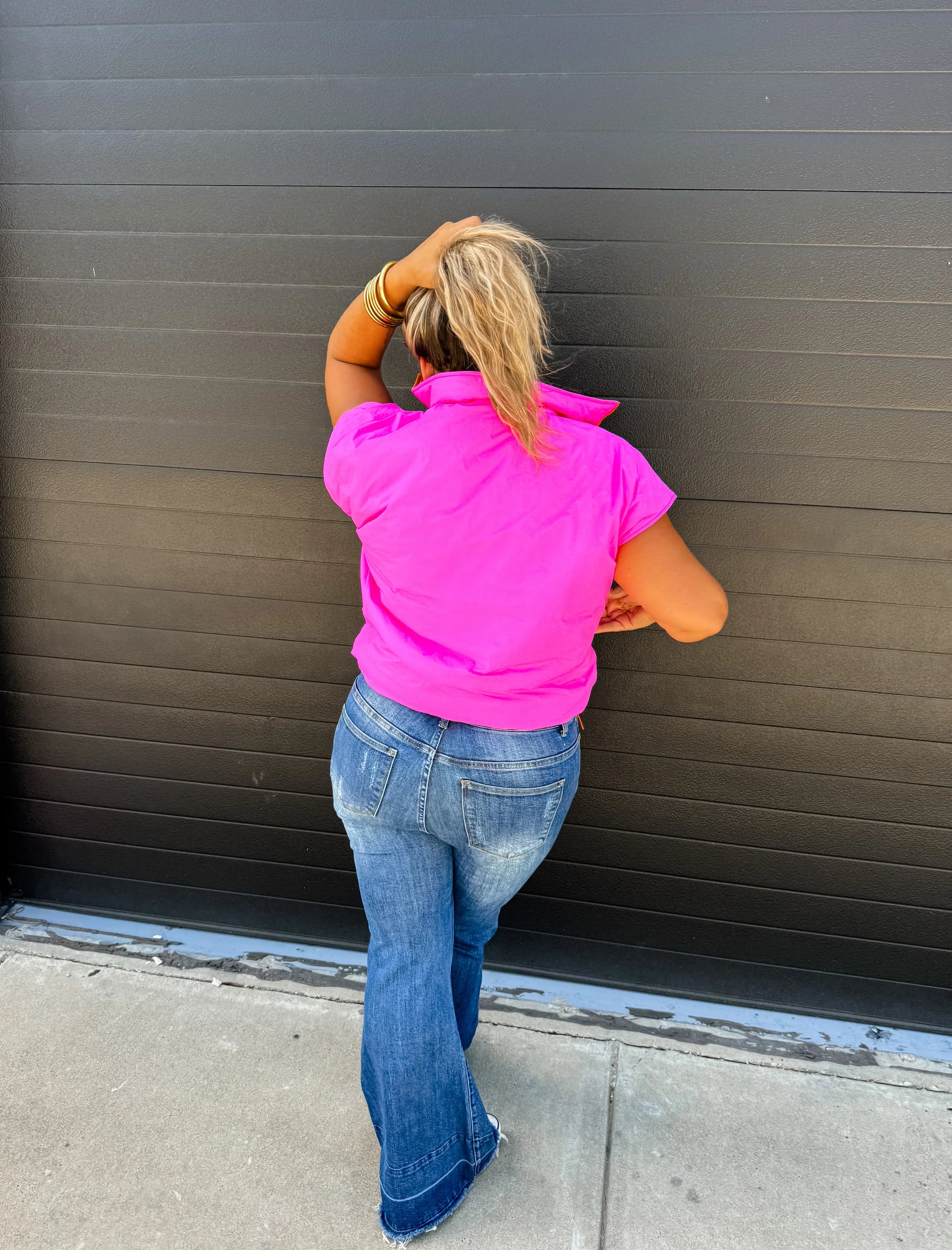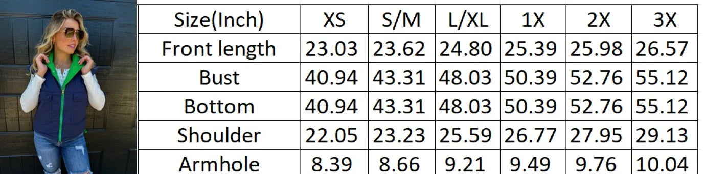 This reversible vest will be this season's trendiest vest - literally 2 vests in one! Pick your color and reverse it for another. Both sides feature working side pockets. Top snap pocket is a faux pocket. You can cinch the waist and wear as a shorter crop or cinched style.