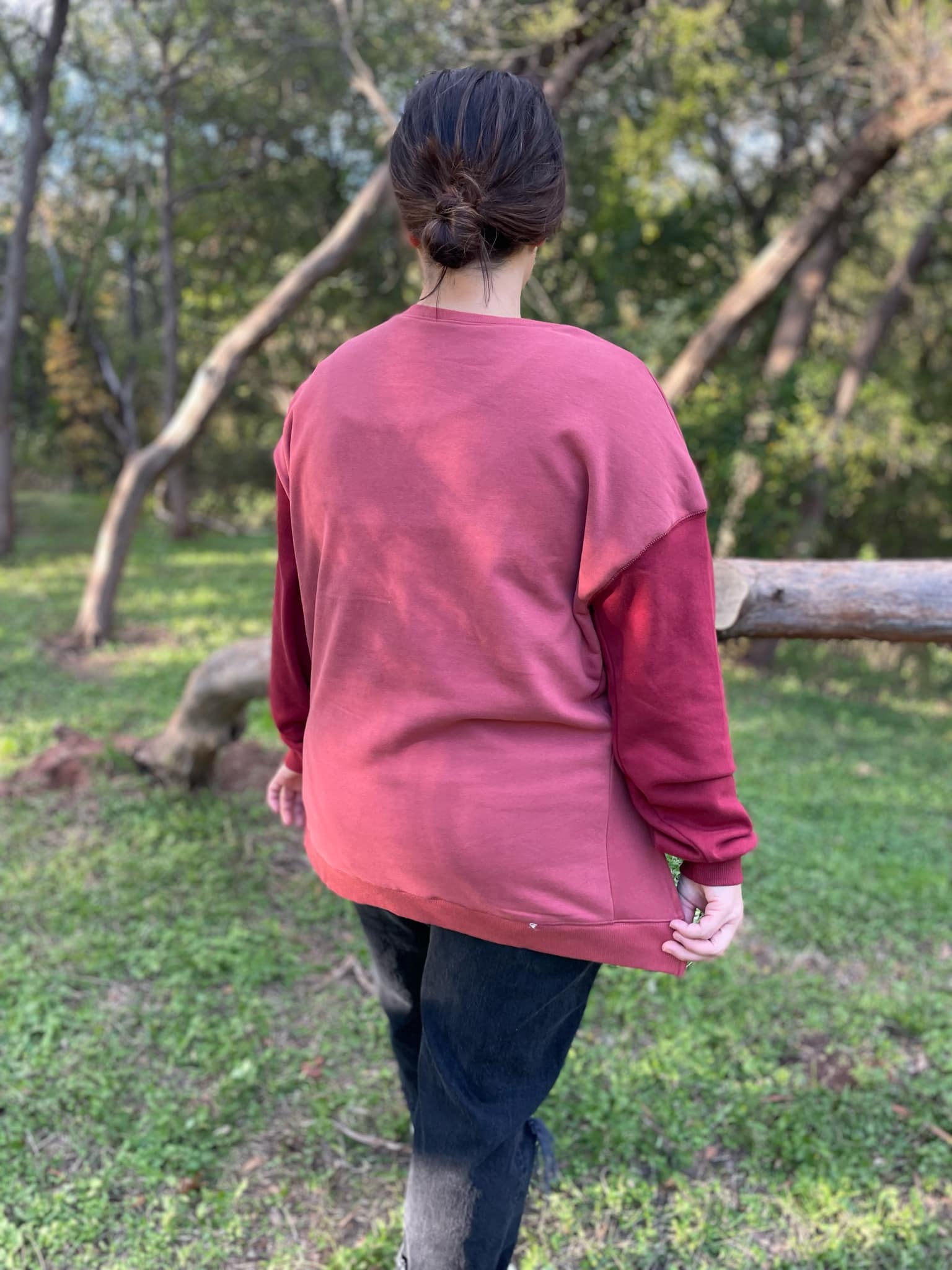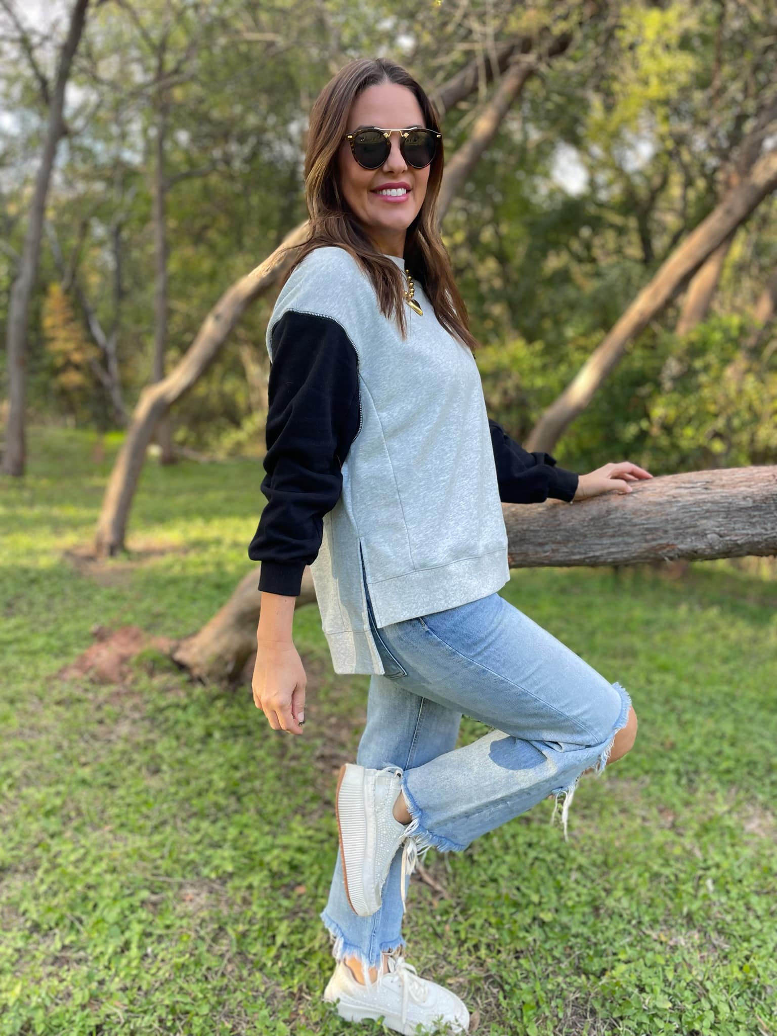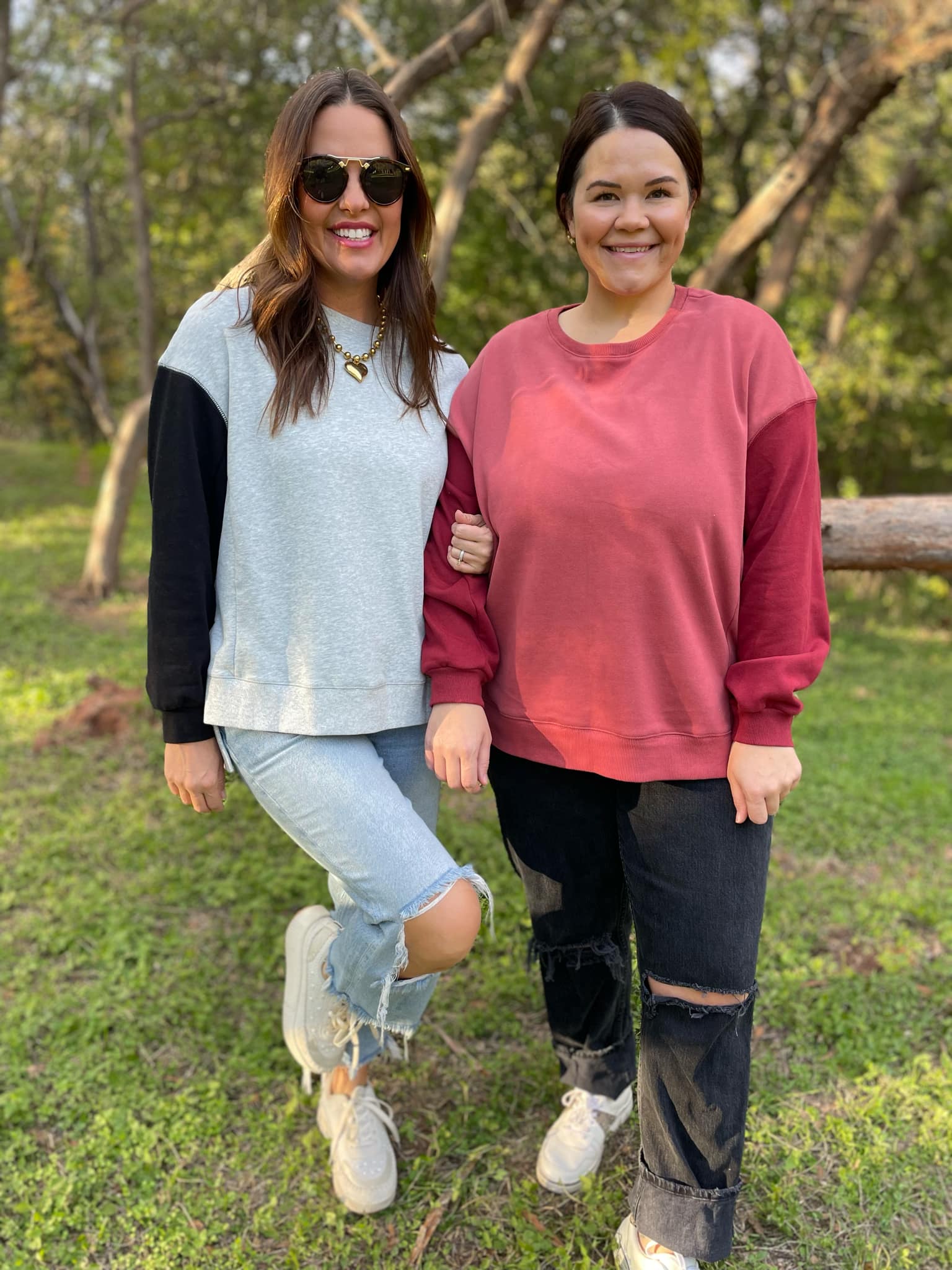 Stay warm and cozy in this two-tone sweatshirt! Featuring contrasting sleeves, drop shoulder and relaxed fit! Available in three colors.