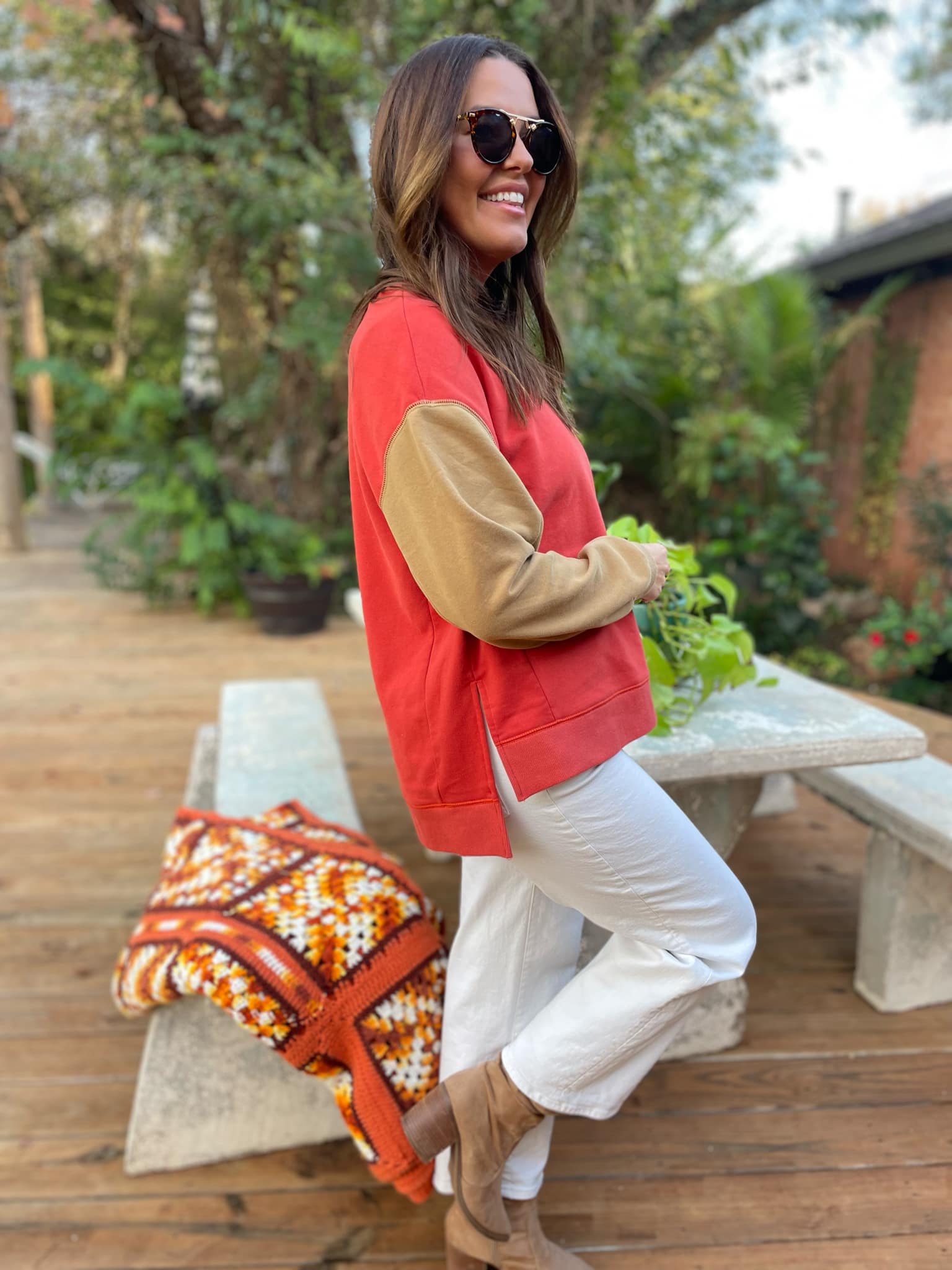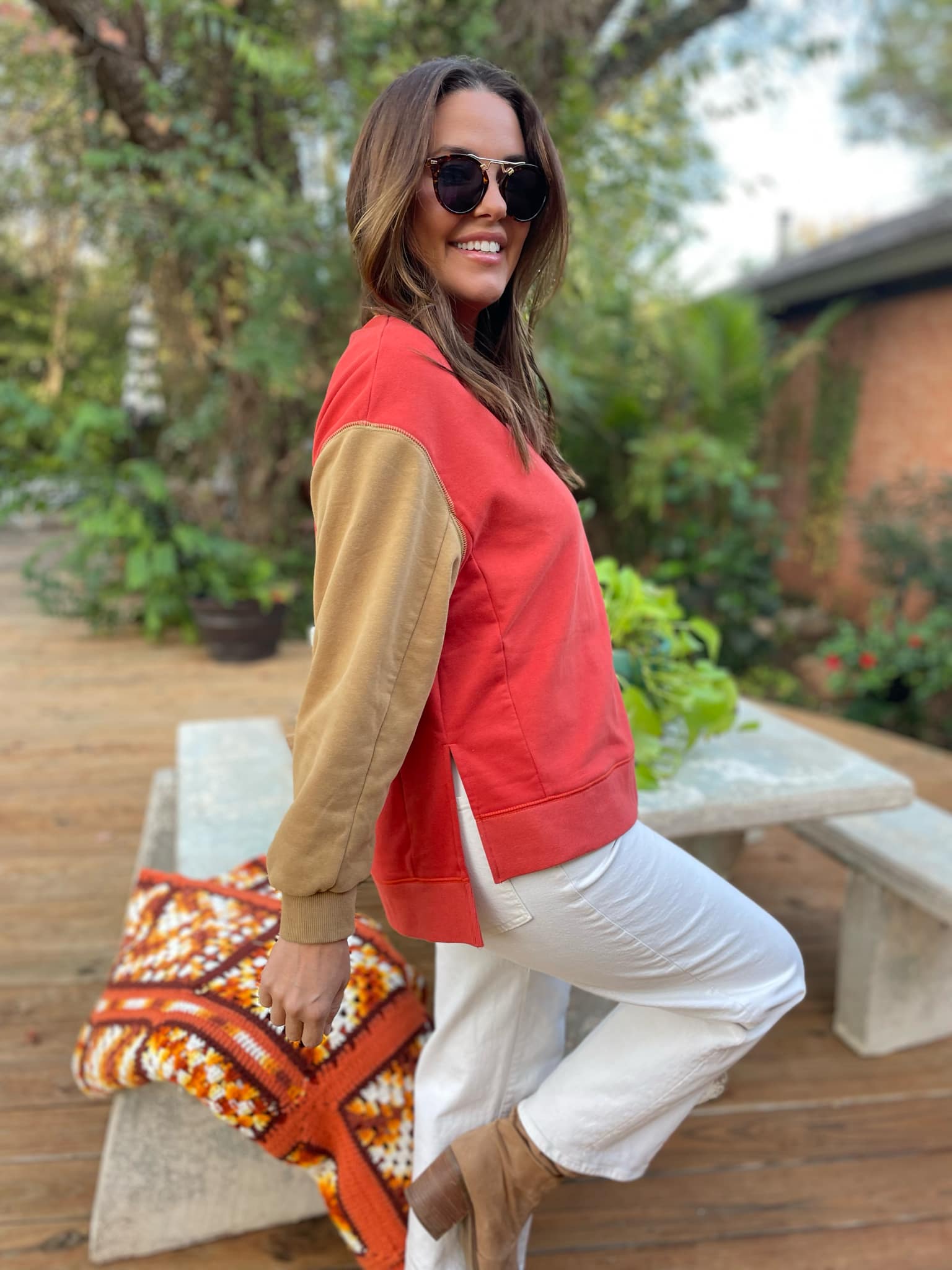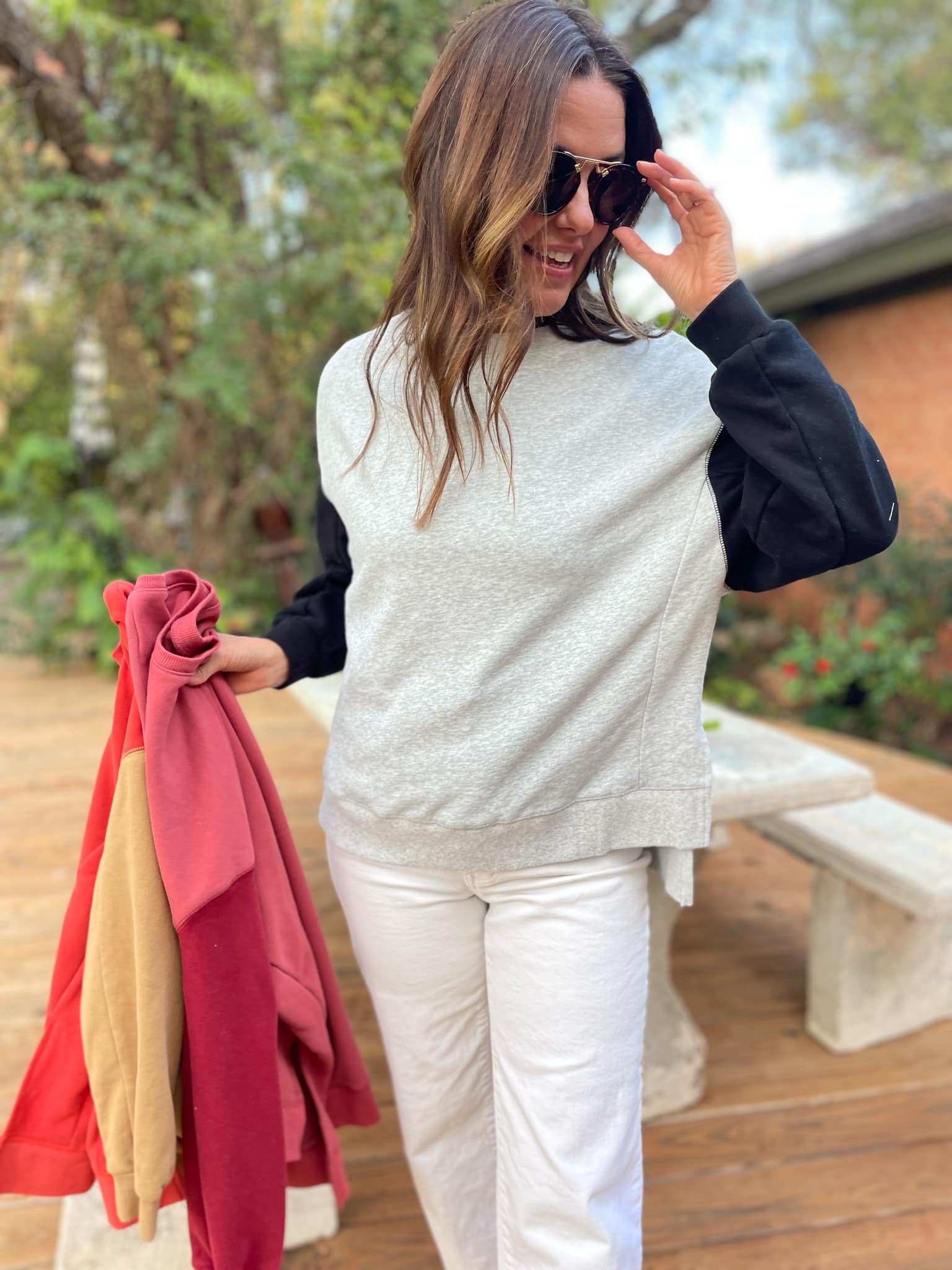 Stay warm and cozy in this two-tone sweatshirt! Featuring contrasting sleeves, drop shoulder and relaxed fit! Available in three colors.