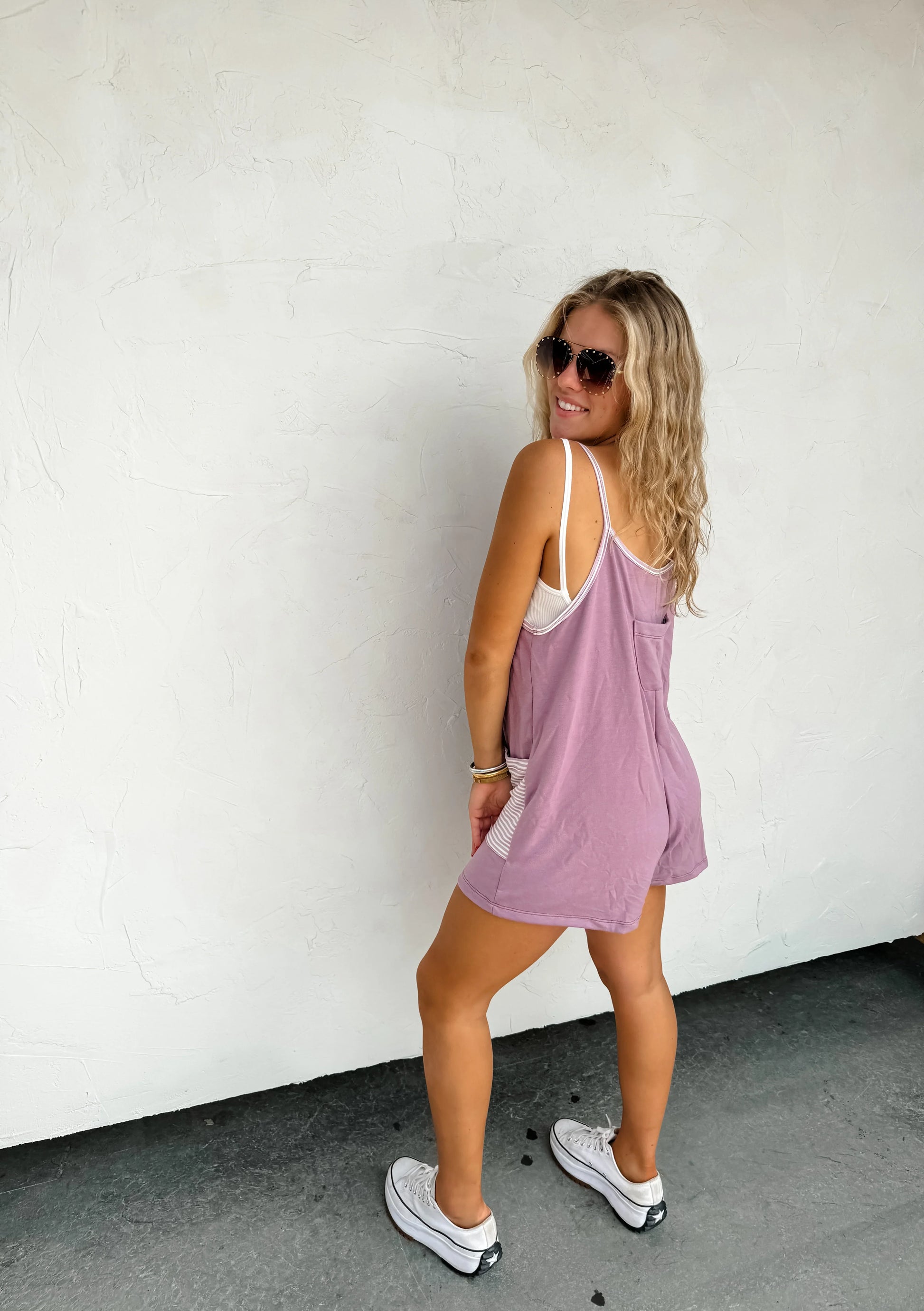 Experience the ultimate style and comfort with our new romper! It's available in four gorgeous colors and features contrasting striped pockets in the front. The back features a pocket for added detail. Straps are adjustable for shorter and taller lengths!