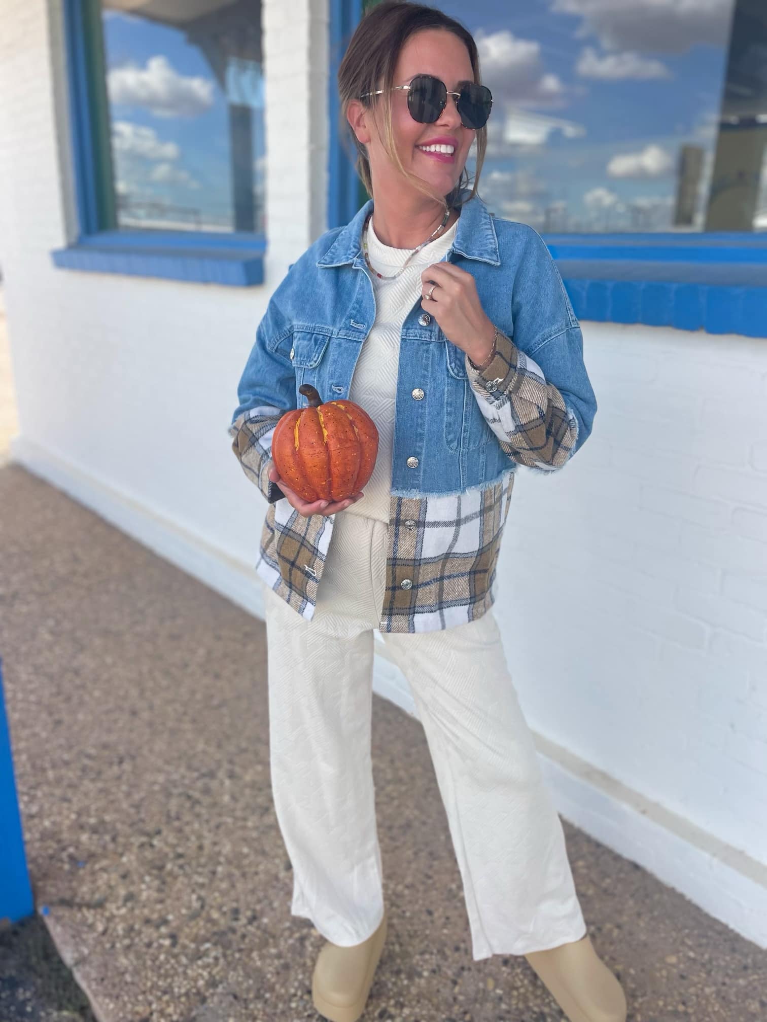 Denim and plaid are staples for fall and this jacket brings the best of both worlds! Featuring a button front with chest pockets and a plaid accent detail on the hem and sleeve.