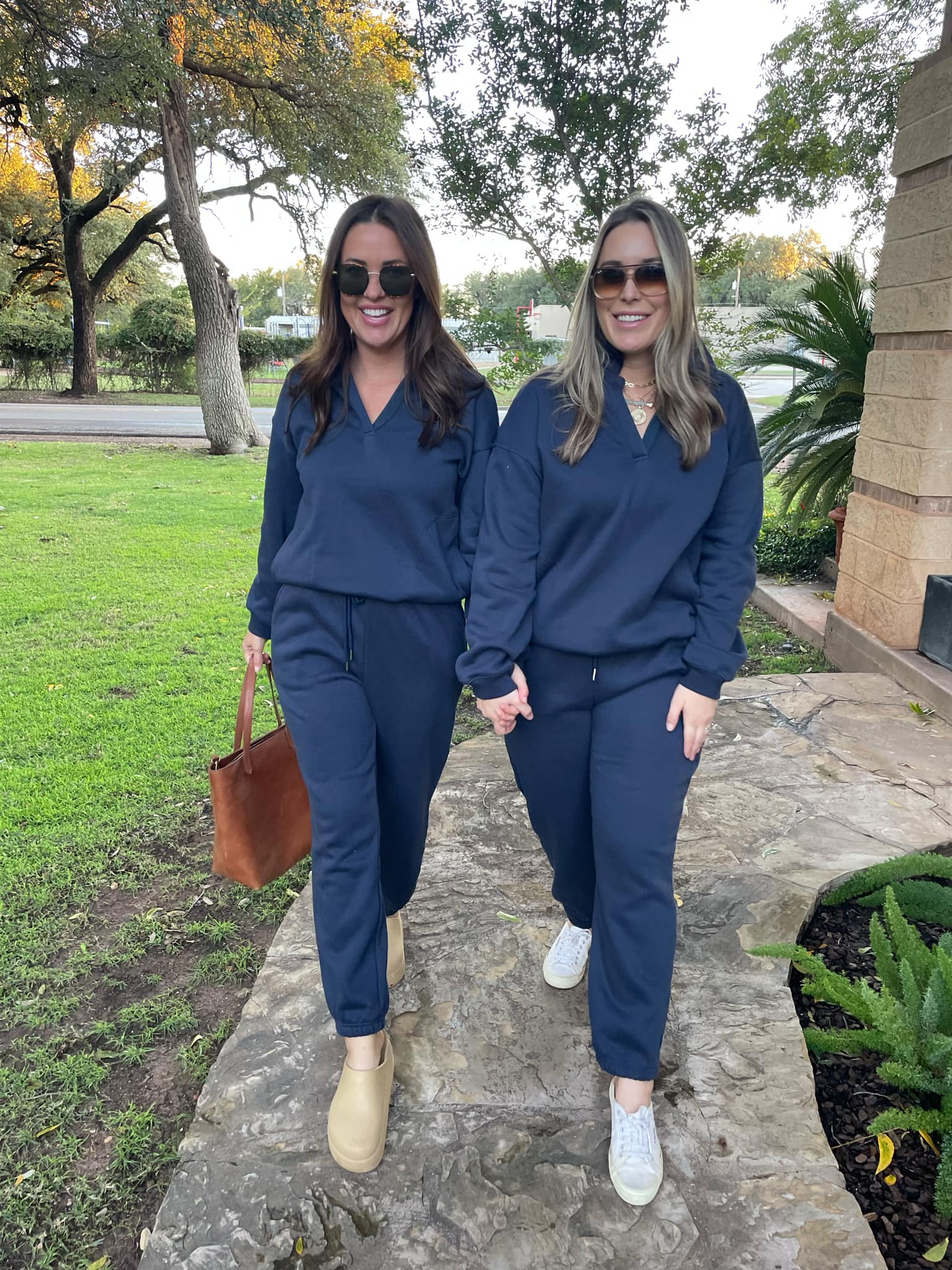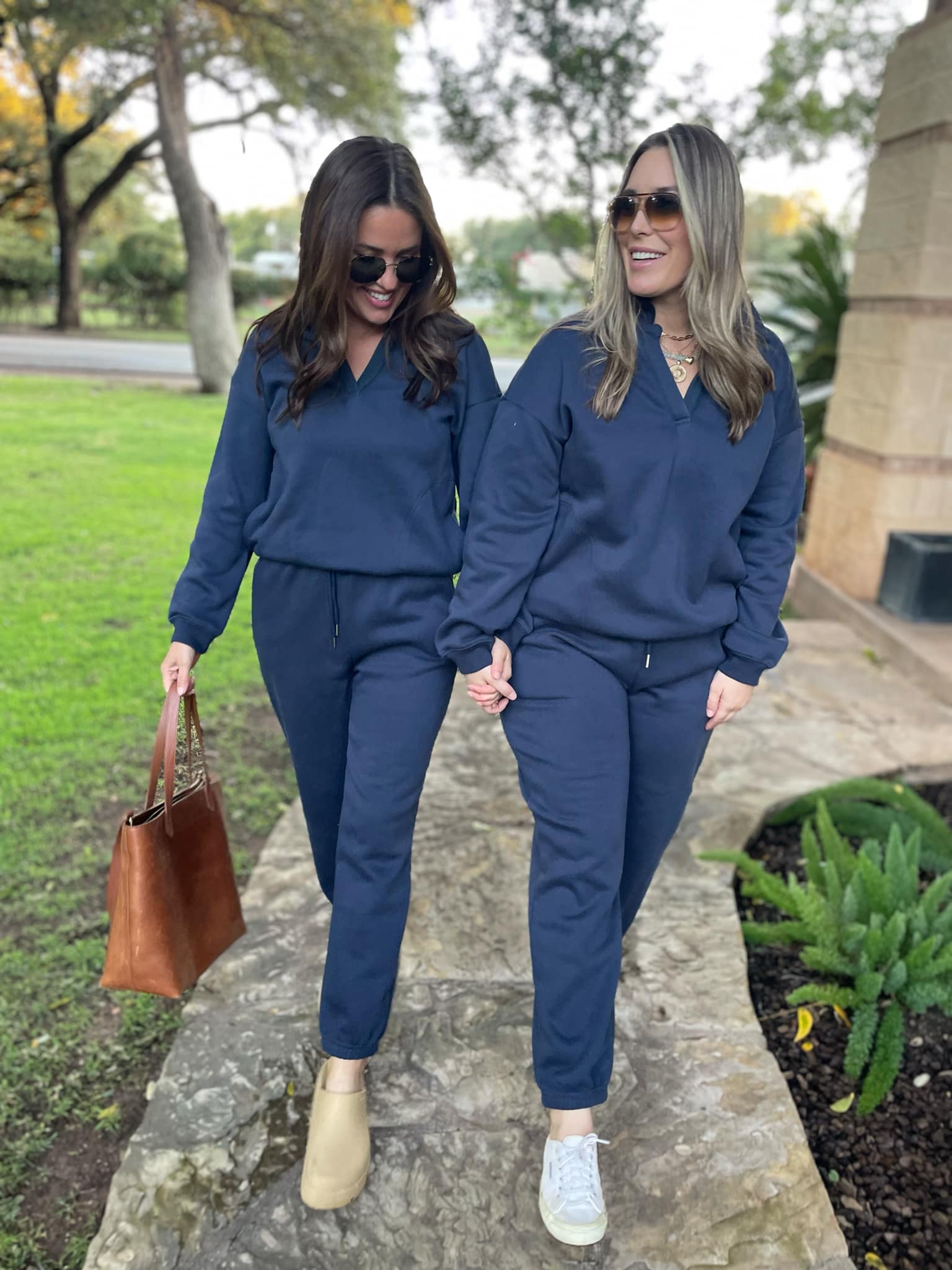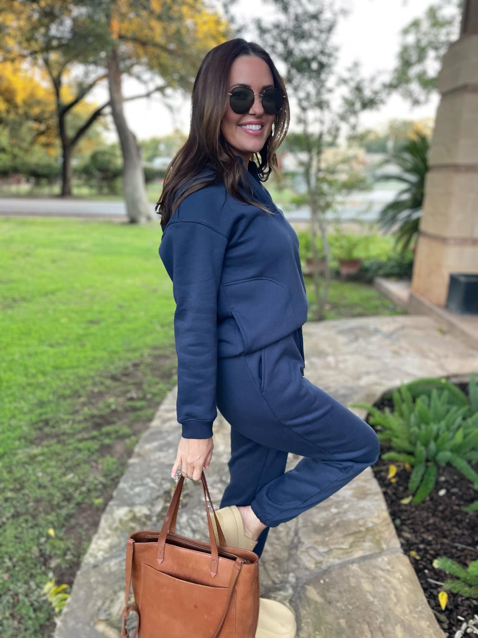 This pullover and jogger set are perfection worn together or as separates. The top features a v-neck with a collar and pockets! The bottoms feature an elastic waist with drawstring tie and (more) pockets! In a comfortable, relaxed fit and gorgeous neutral navy it's a go-to for running errands or lounging!