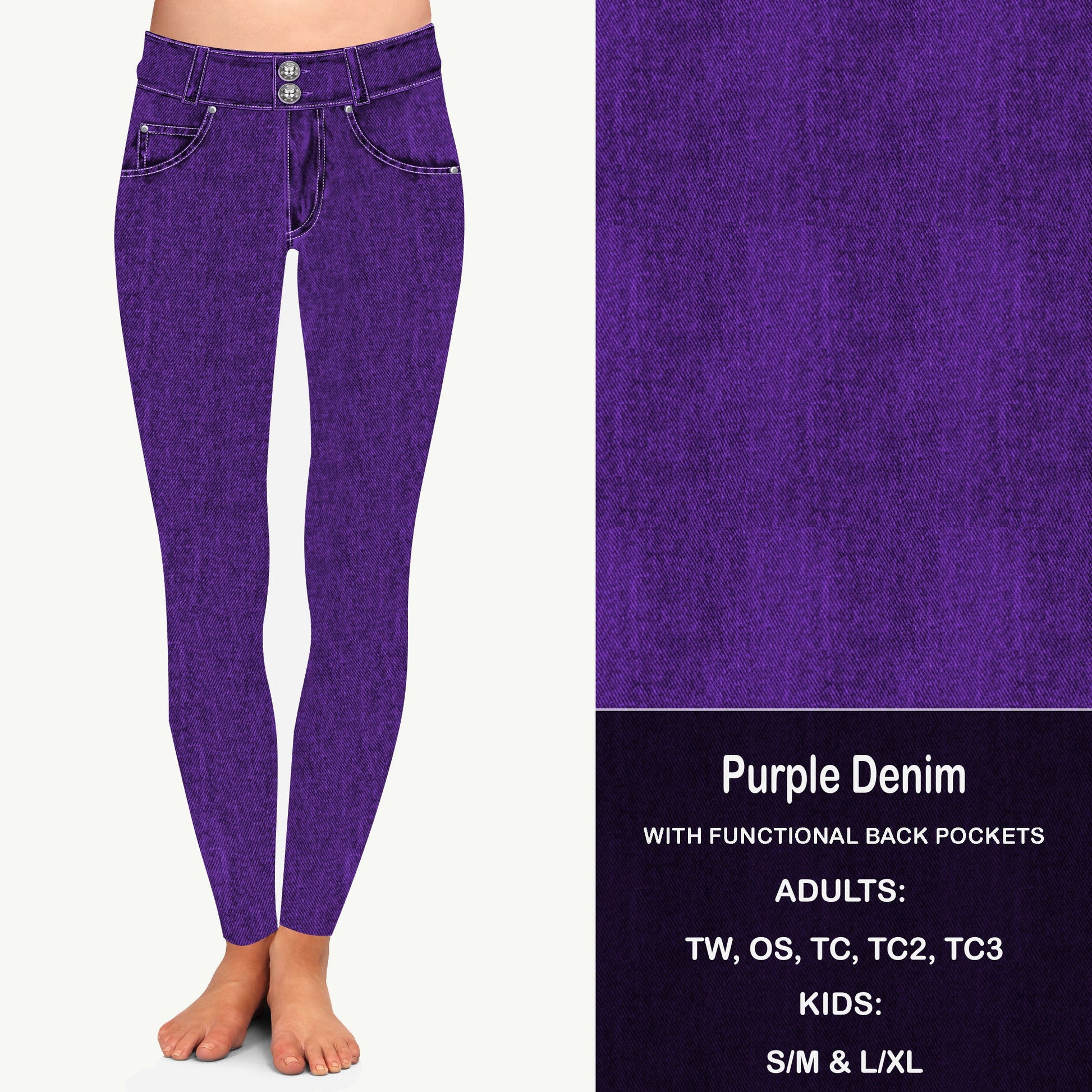 PURPLE FAUX DENIM - Leggings with Pockets Preorder Closes 8/11 ETA LATE SEPT EARLY OCT