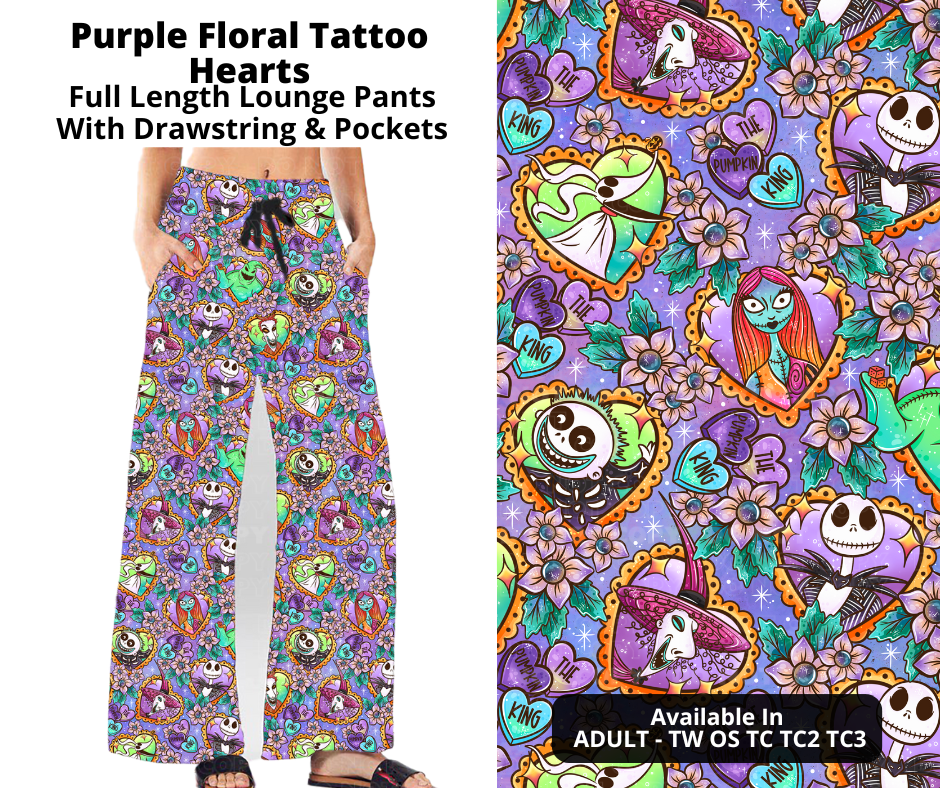 Purple Floral Tattoo Hearts Full Length Lounge Pants