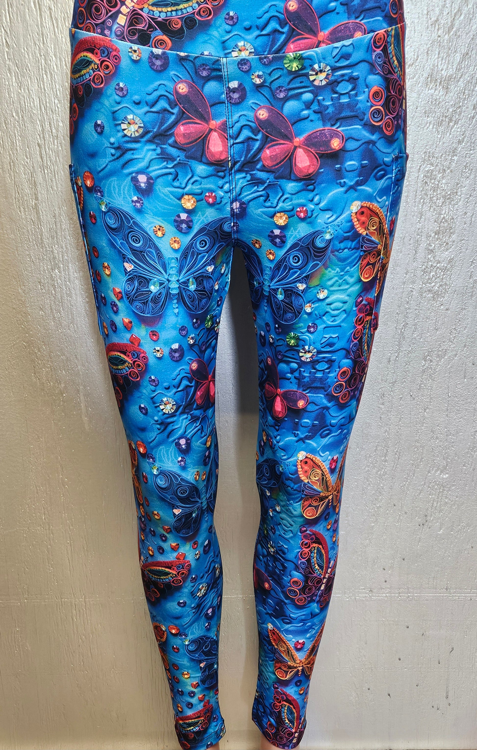 Quilting Jeweled Butterflies leggings with pockets